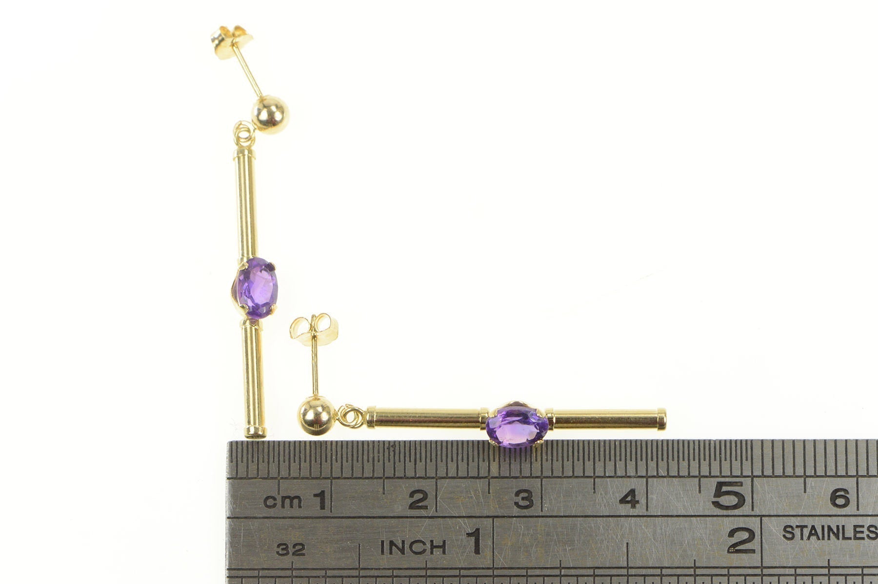 ·Item: 14K Oval Amethyst Inset Drop Bar Dangle Earrings Yellow Gold