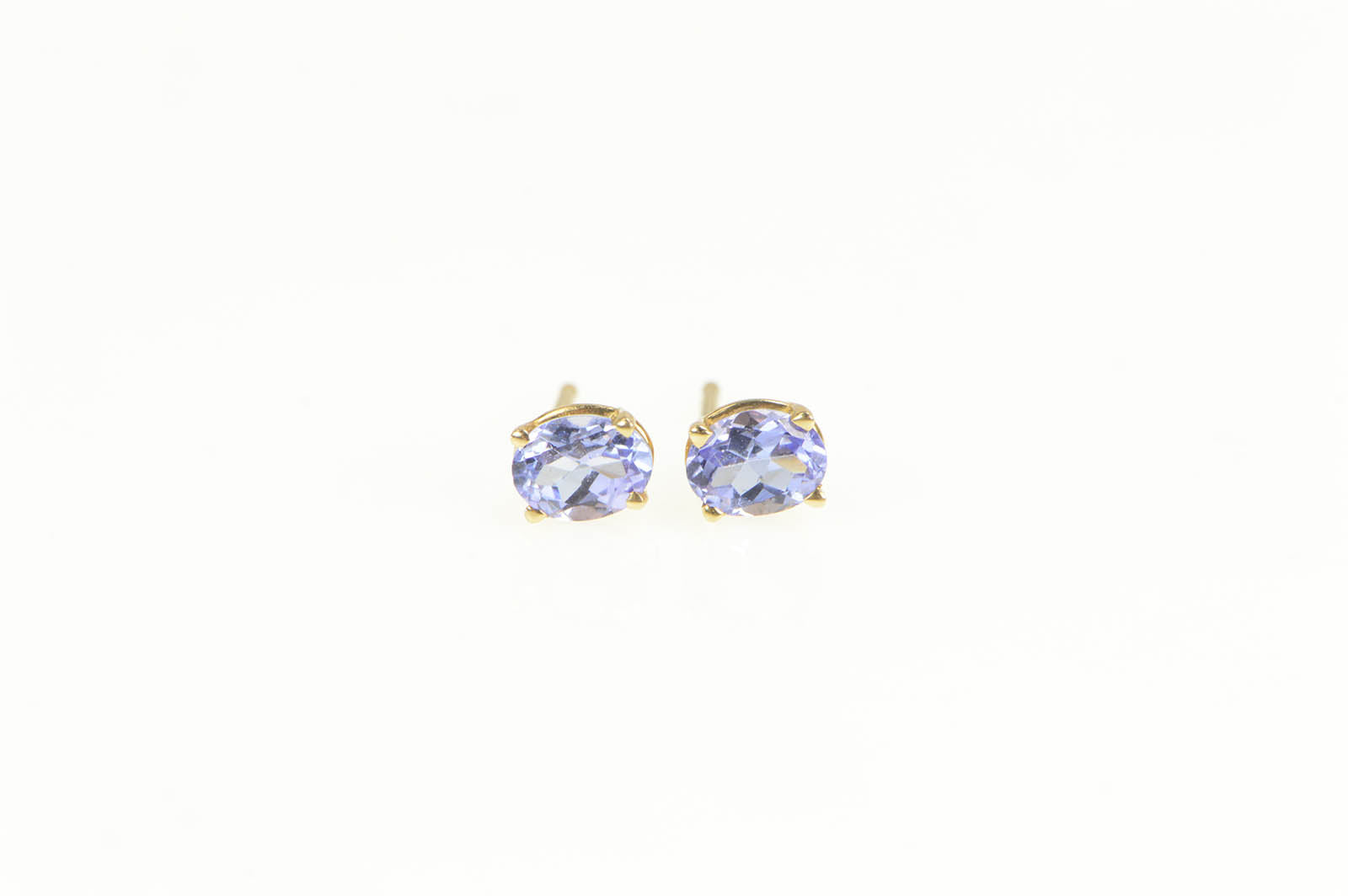 ·Item: 14K Oval Amethyst Solitaire Classic Stud Earrings Yellow Gold