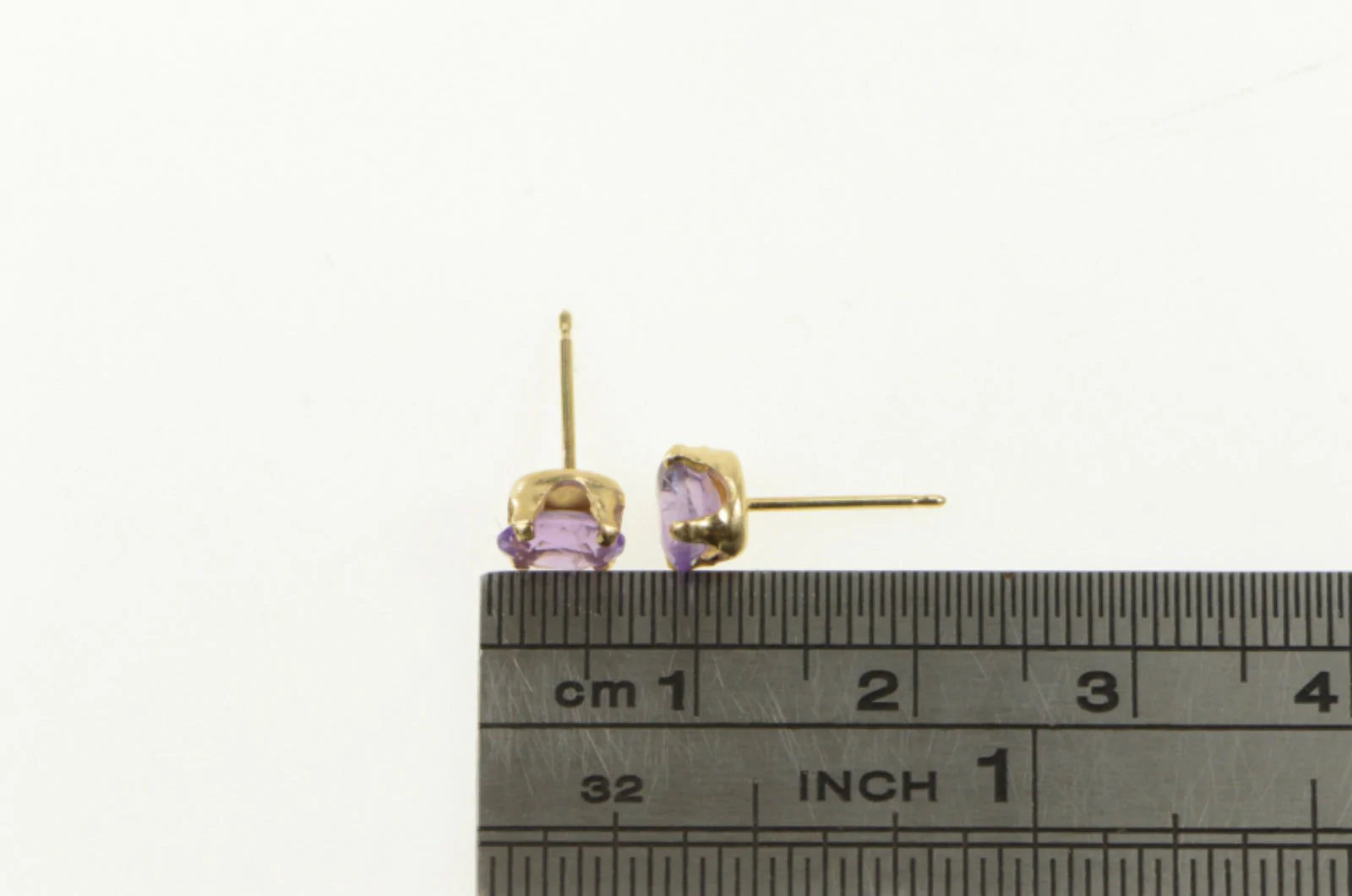 ·Item: 14K Oval Amethyst Solitaire Classic Stud Earrings Yellow Gold