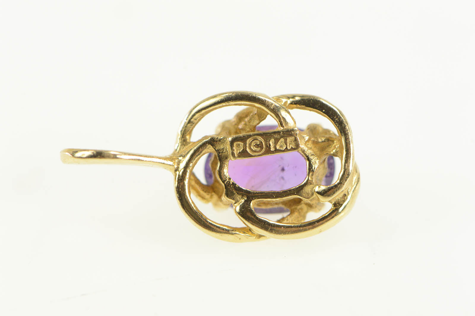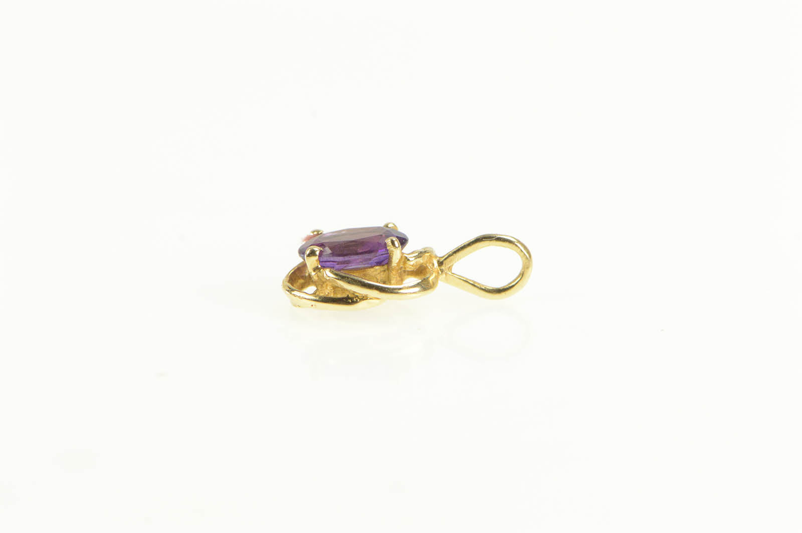 14K Oval Amethyst Twist Trim Classic Pendant Yellow Gold