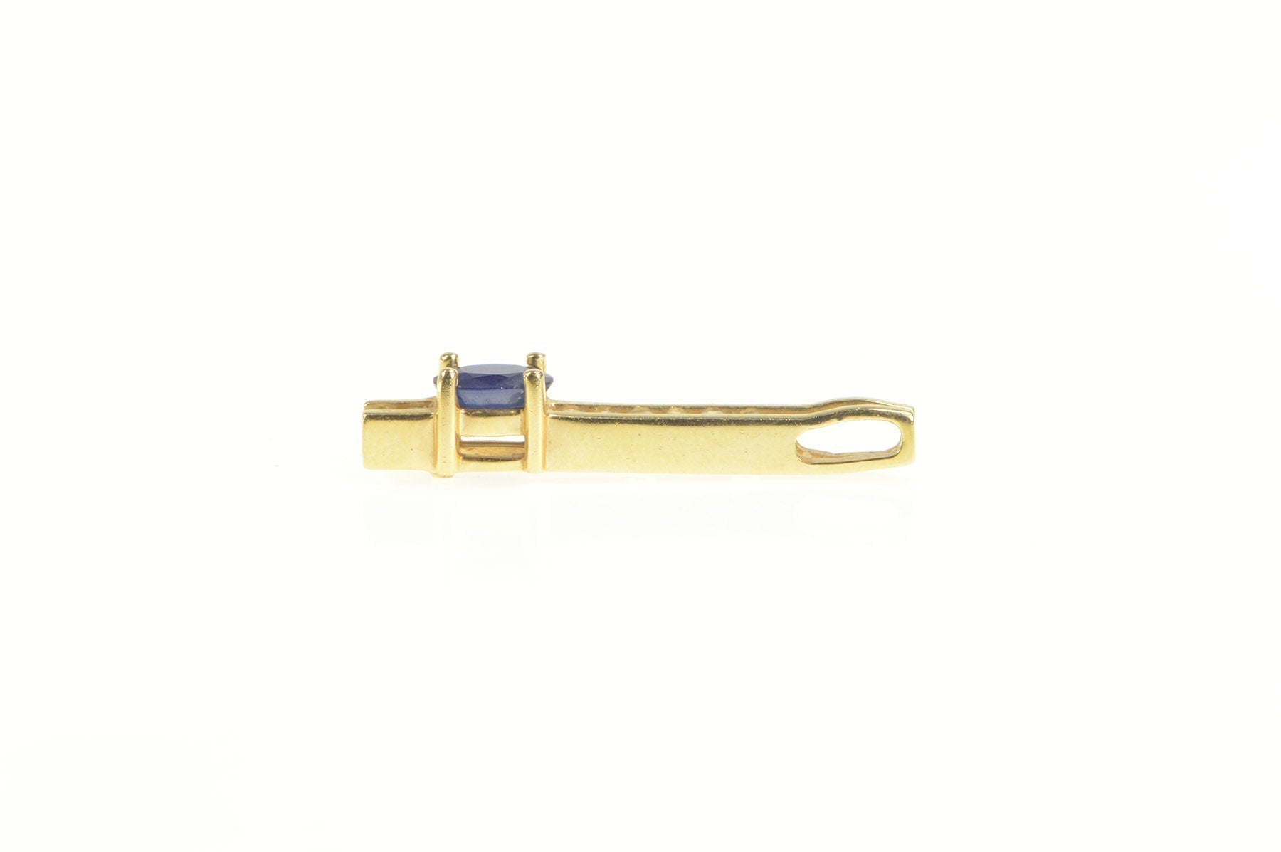 ·Item: 14K Oval Natural Sapphire Diamond Bar Statement Pendant Yellow Gold