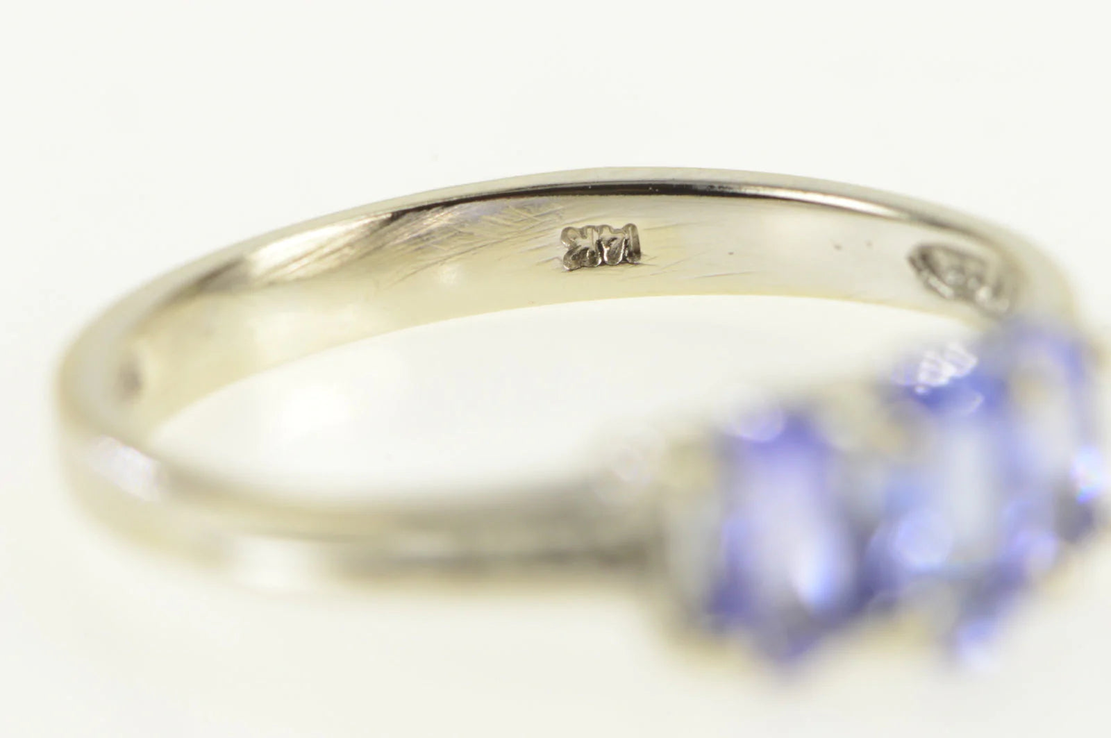 14K Oval Tanzanite Three Stone Diamond Accent Ring White Gold