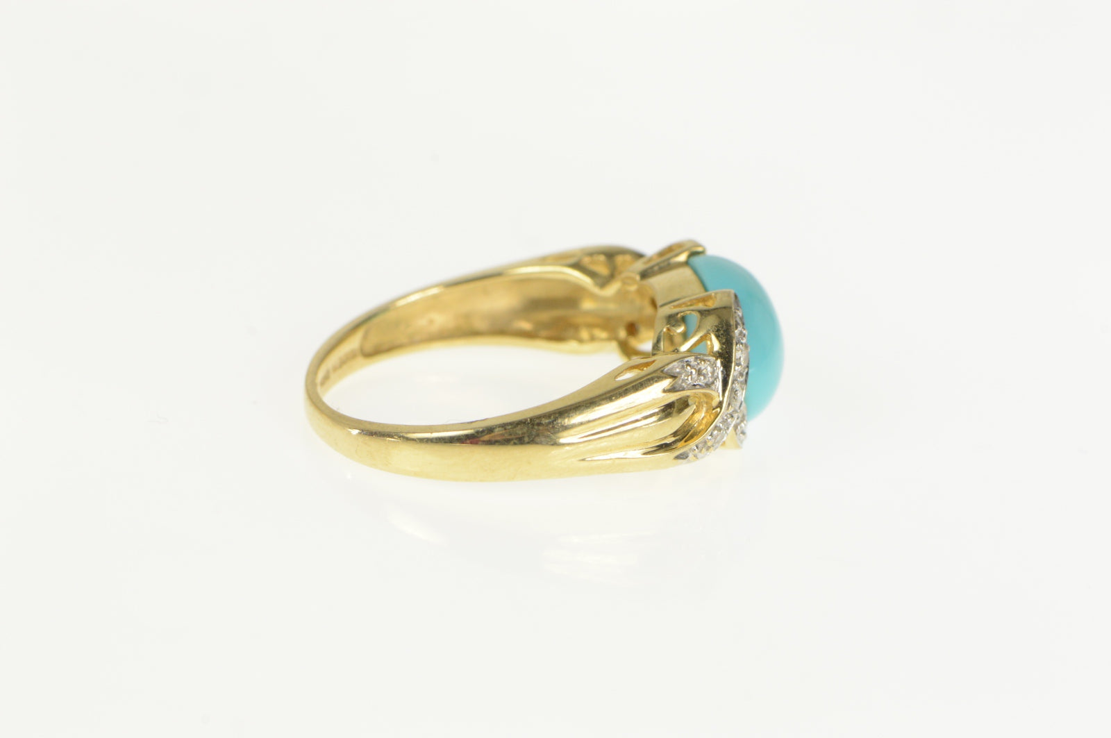 14K Oval Turquoise Cabochon Diamond X Criss Cross Ring Yellow Gold