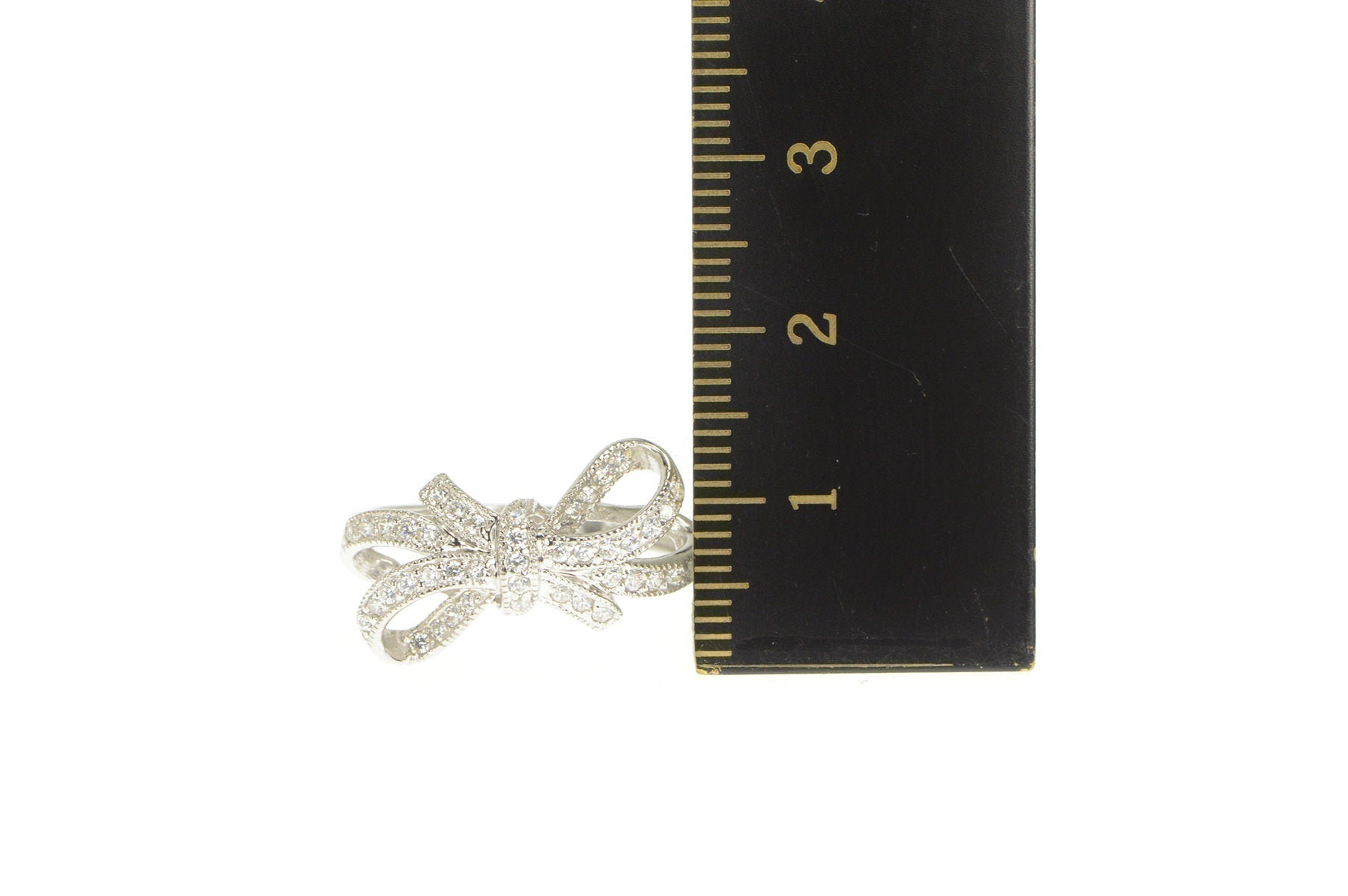 ·Item: 14K Pave Encrusted Bow Ribbon Promise Statement Ring Size 8 White Gold