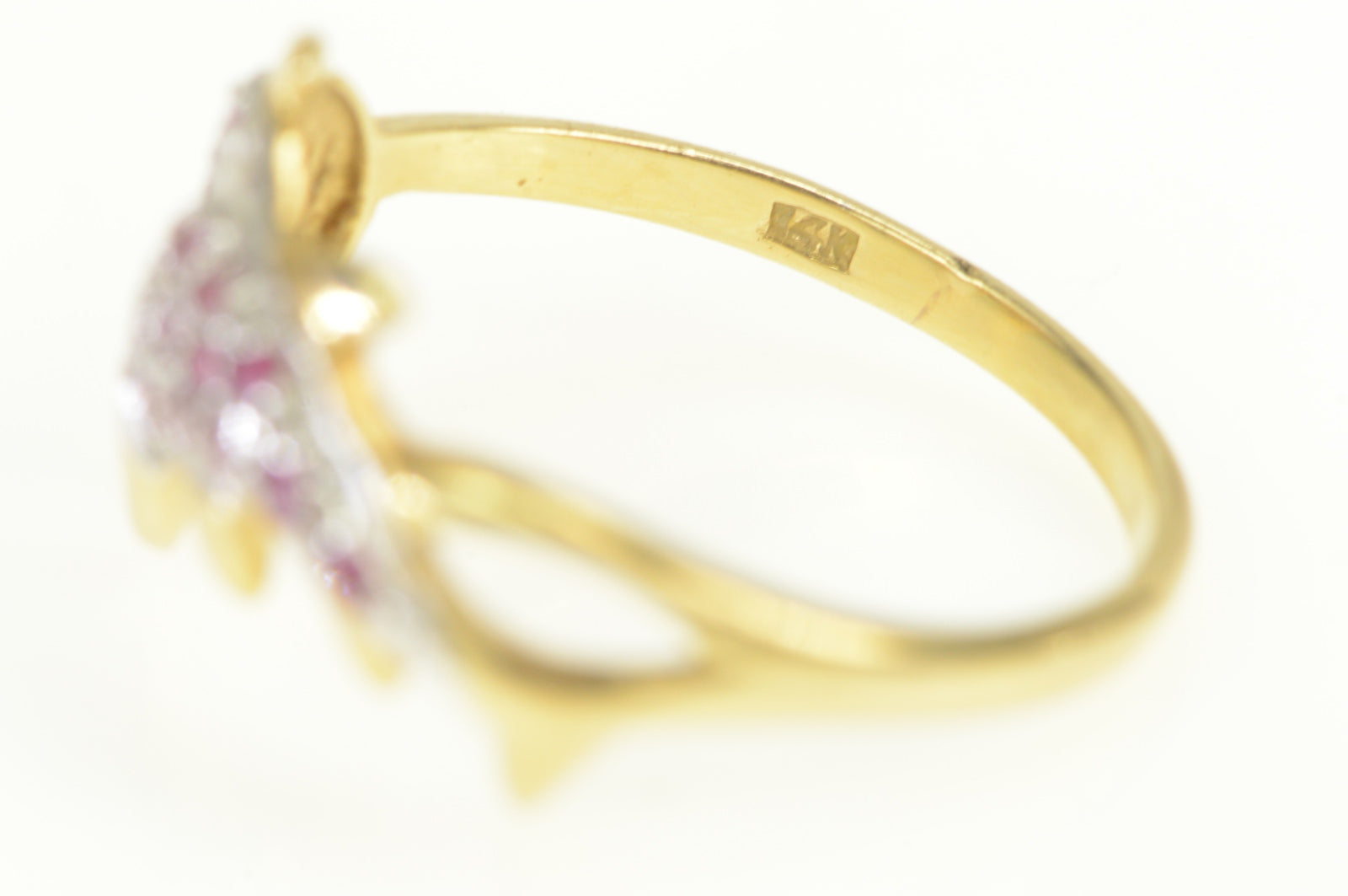 14K Pave Ruby Encrusted Dolphin Statement Ring Yellow Gold