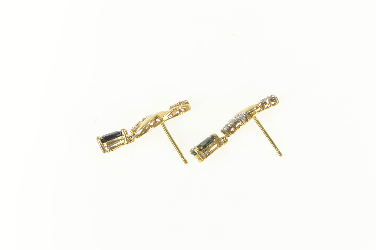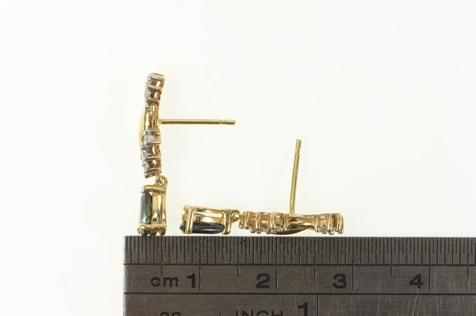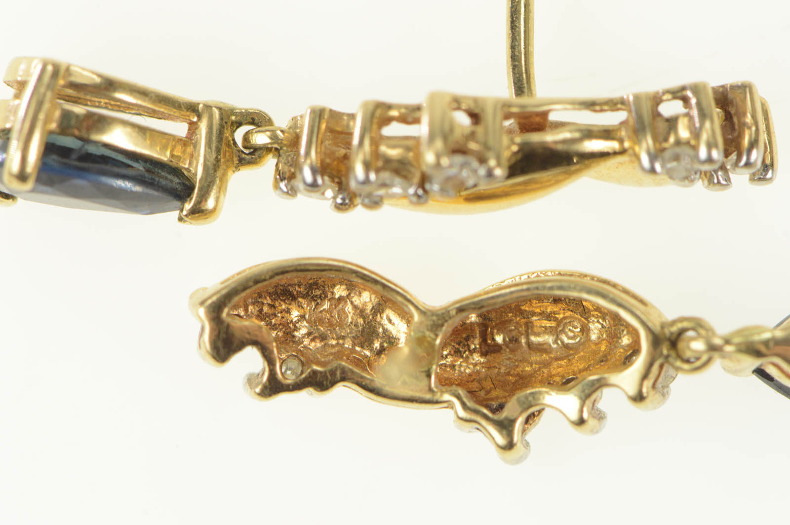 ·Item: 14K Pear Sapphire Diamond Accent Drop Dangle Earrings Yellow Gold
