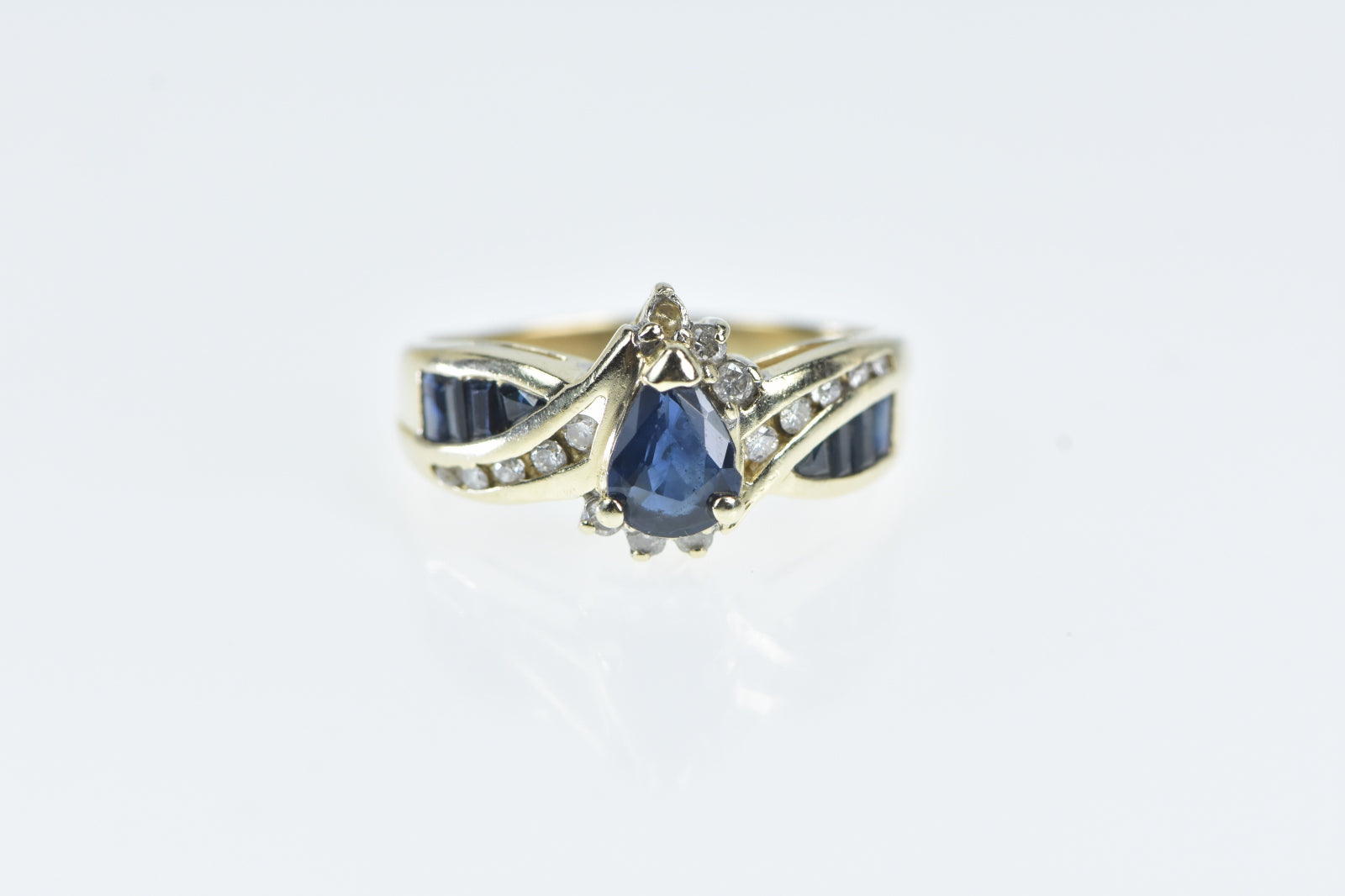 ·Item: 14K Pear Sapphire Diamond Accent Statement Ring Size 5.75 Yellow Gold