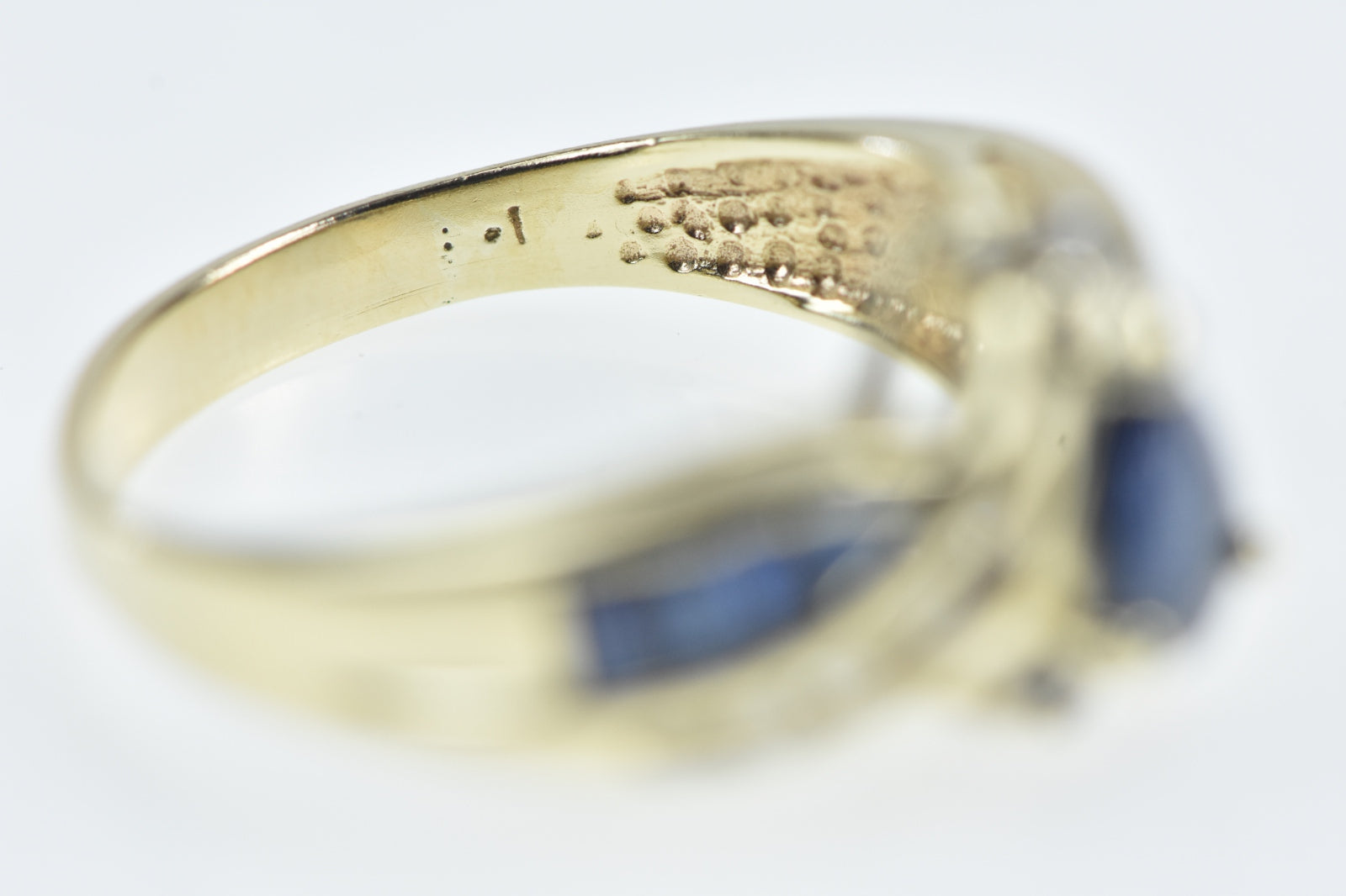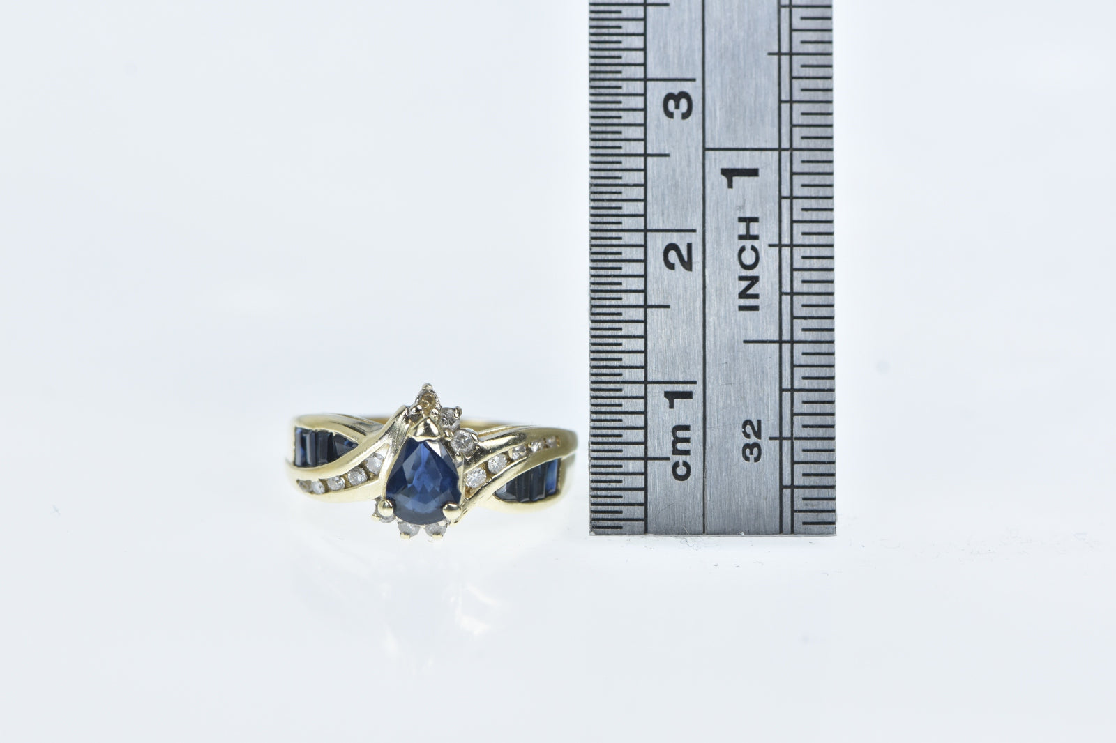 14K Pear Sapphire Diamond Accent Statement Ring Yellow Gold