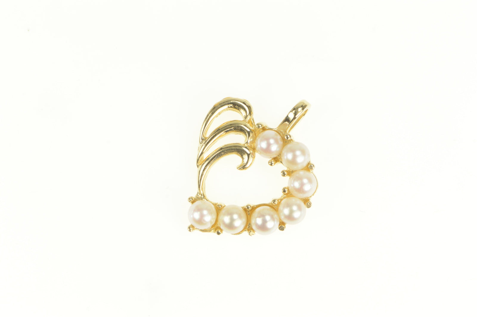 ·Item: 14K Pearl Classic Curve Swirl Heart Love Symbol Pendant Yellow Gold