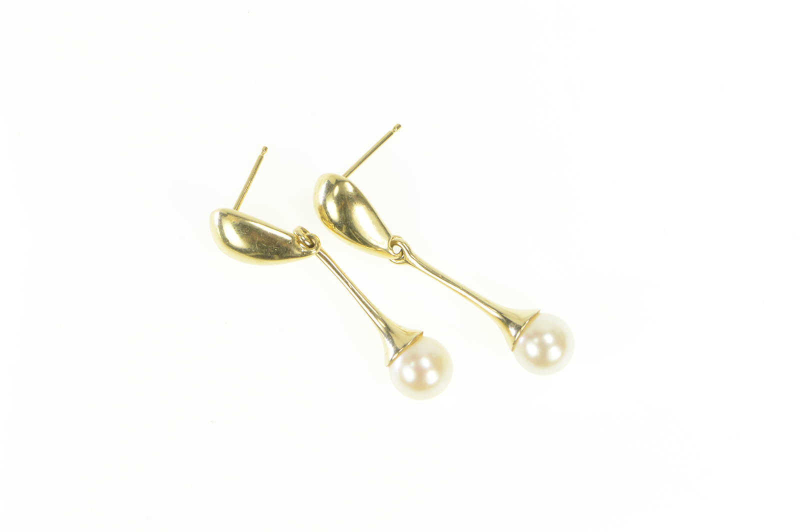 ·Item: 14K Pearl Dangle Drop Curvy Statement Earrings Yellow Gold