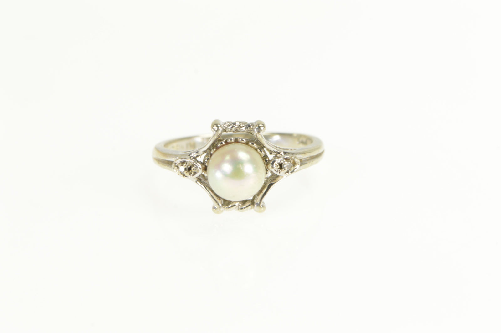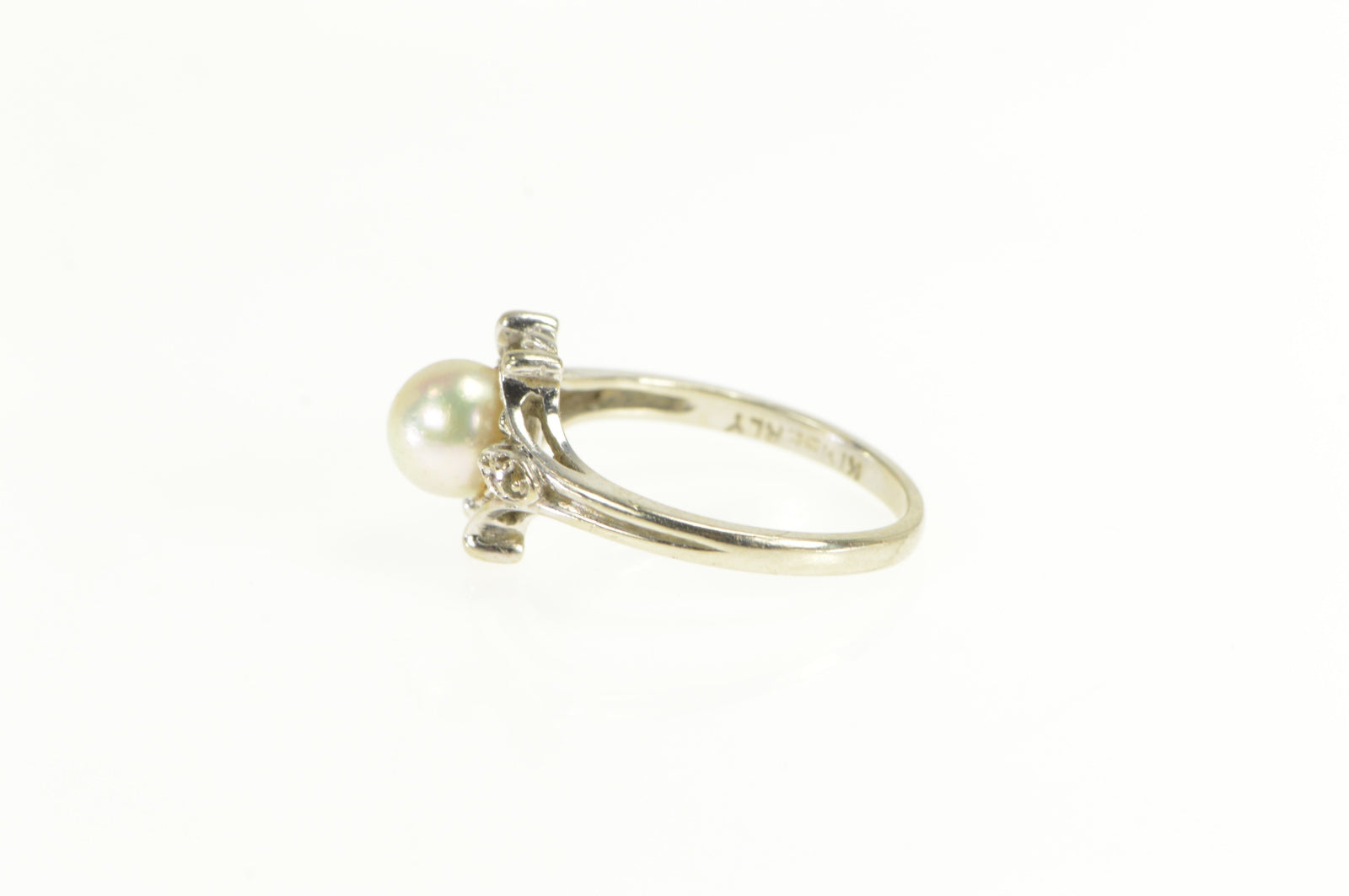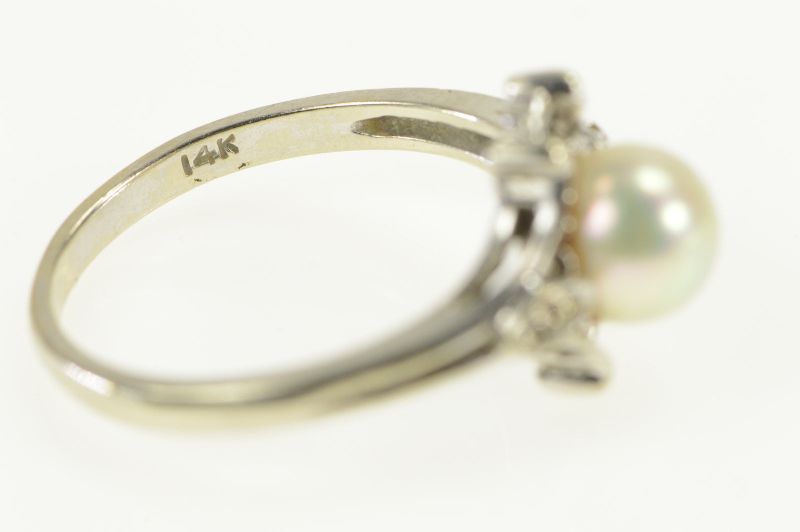 ·Item: 14K Pearl Diamond Accent Classic Statement Ring Size 6.25 White Gold