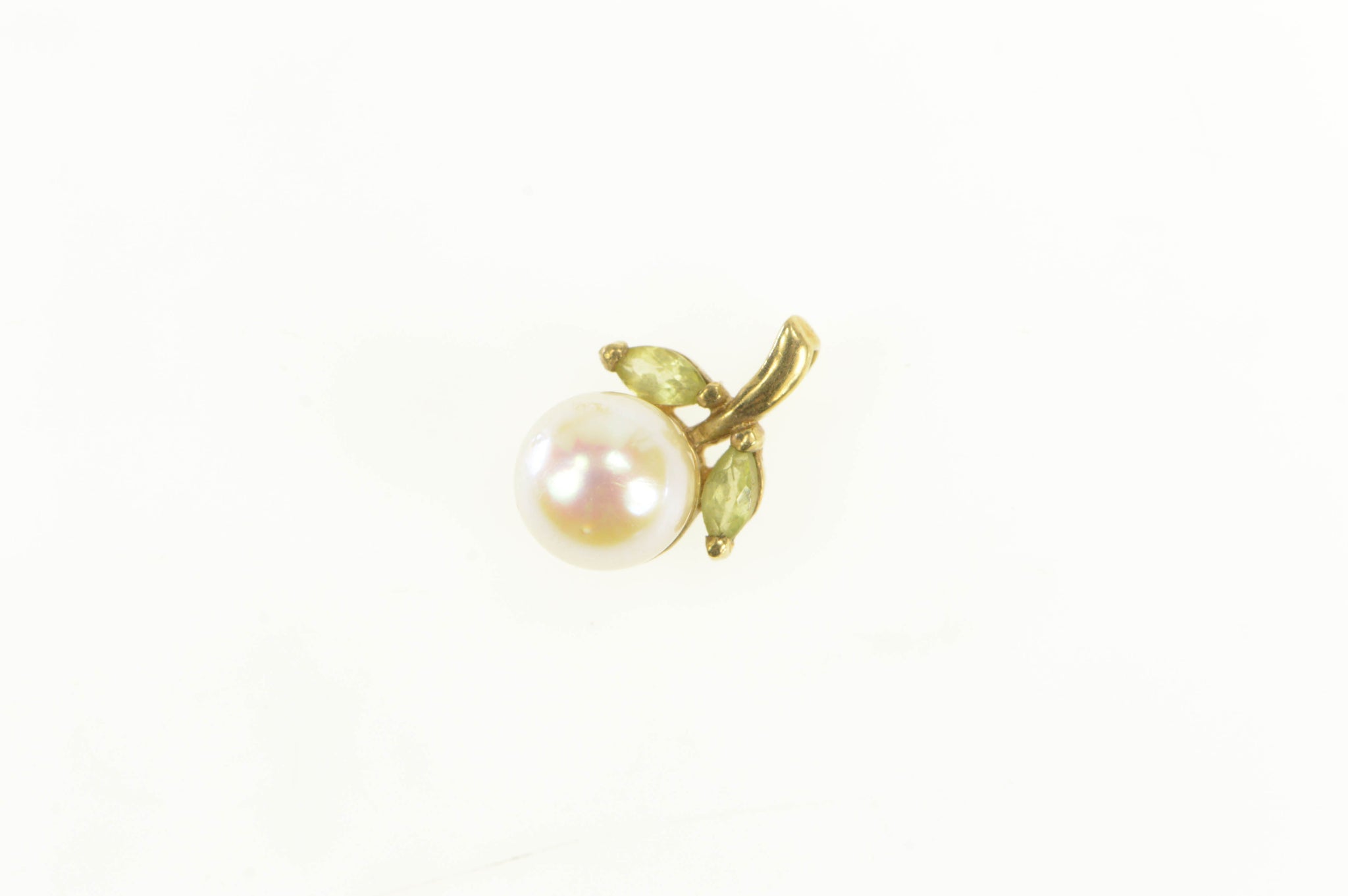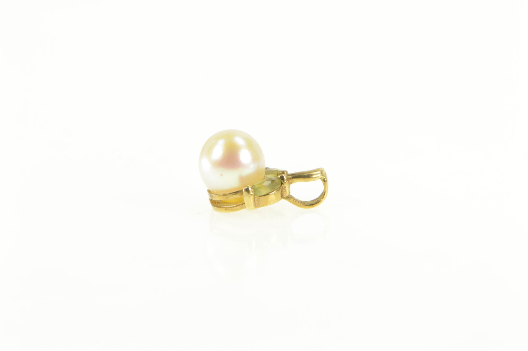 ·Item: 14K Pearl Peridot Accent Flower Fruit Vintage Pendant Yellow Gold