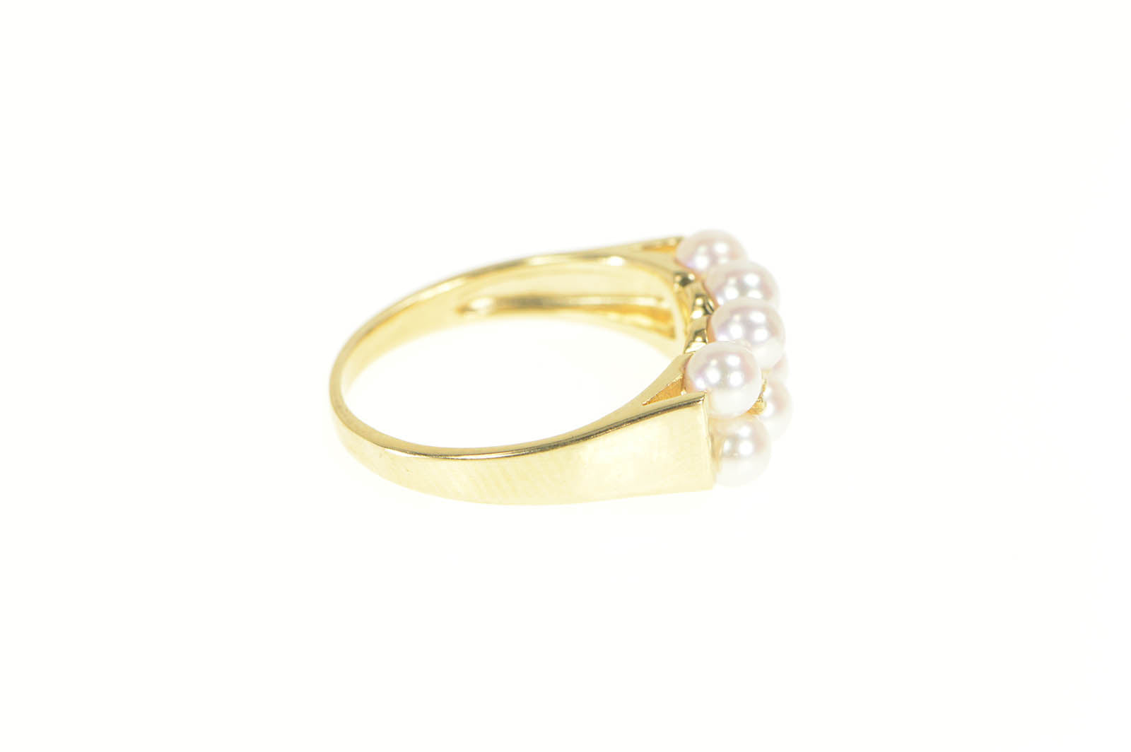 ·Item: 14K Pearl Squared Row Cluster Diamond Accent Ring Size 5.75 Yellow Gold