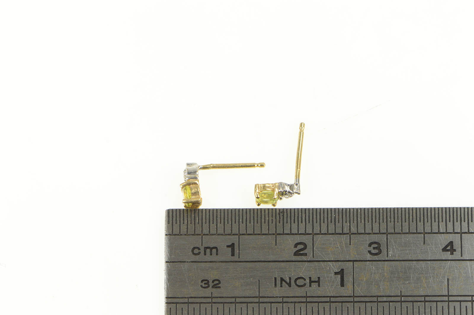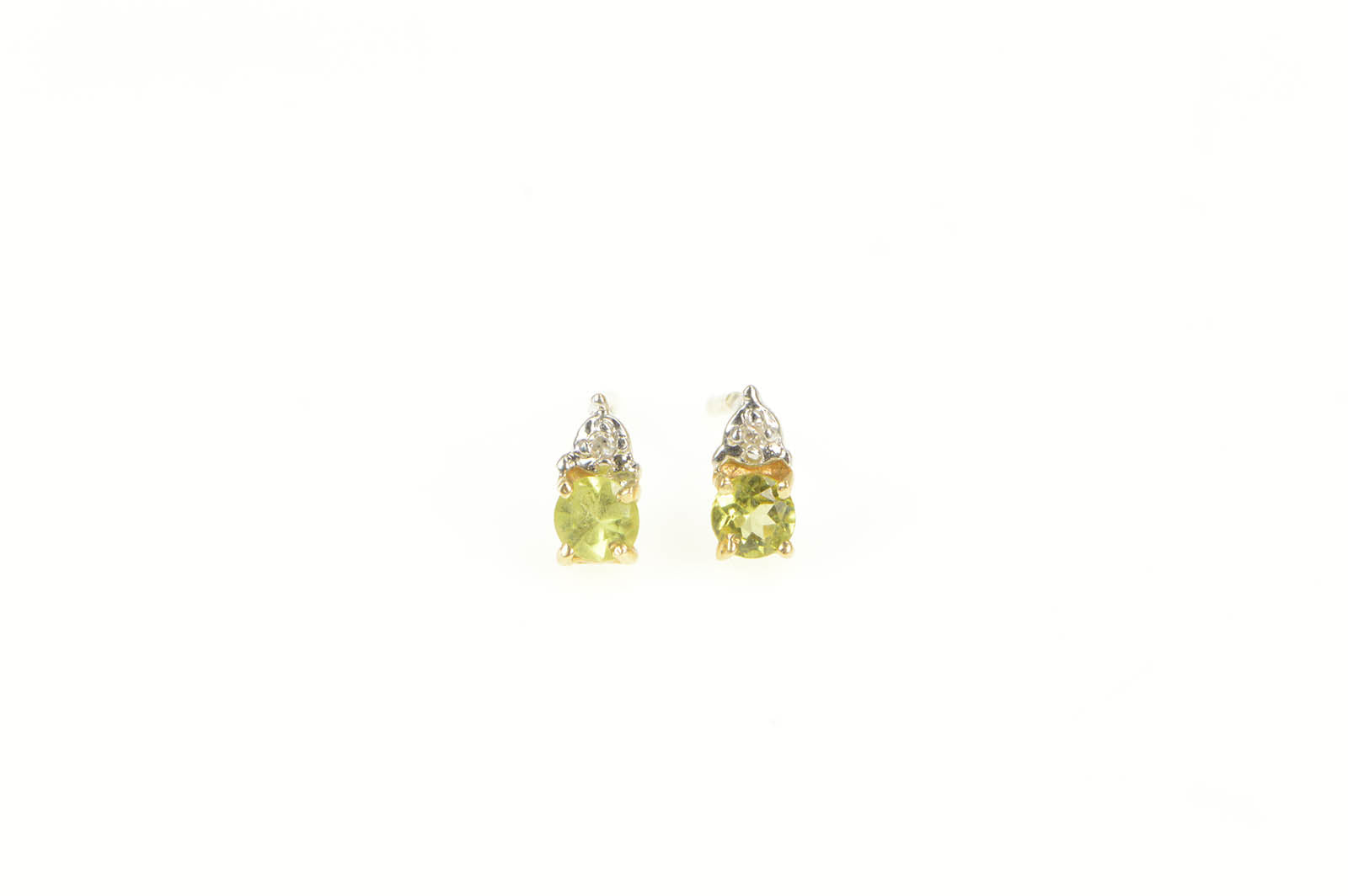 14K Peridot Diamond Accent Stud Simple Earrings Yellow Gold