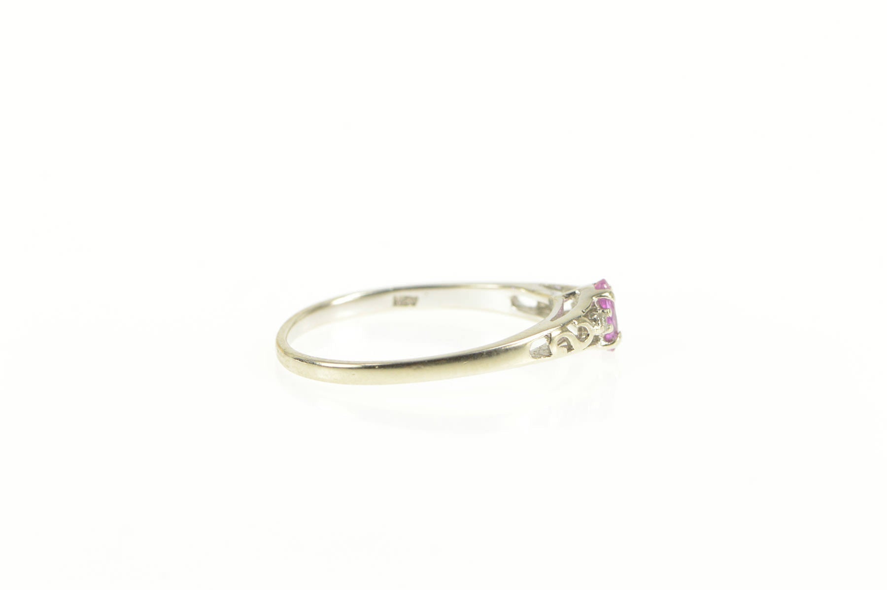 ·Item: 14K Pink Sapphire Diamond Accent Scroll Filigree Ring Size 7 White Gold
