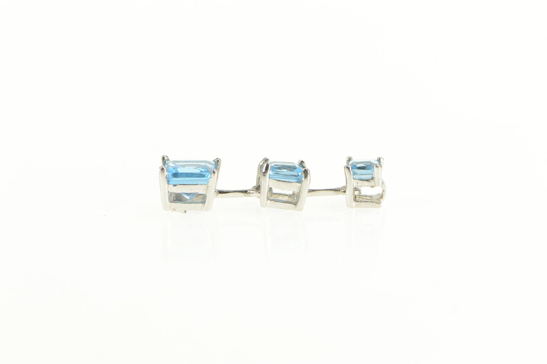 ·Item: 14K Princess Blue Topaz Tiered Drop Statement Pendant White Gold