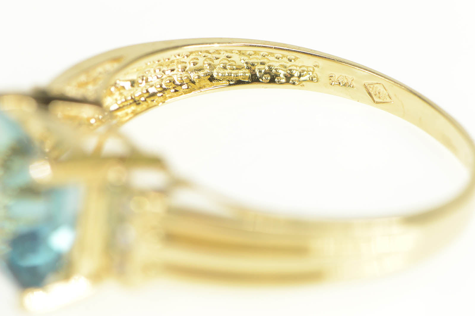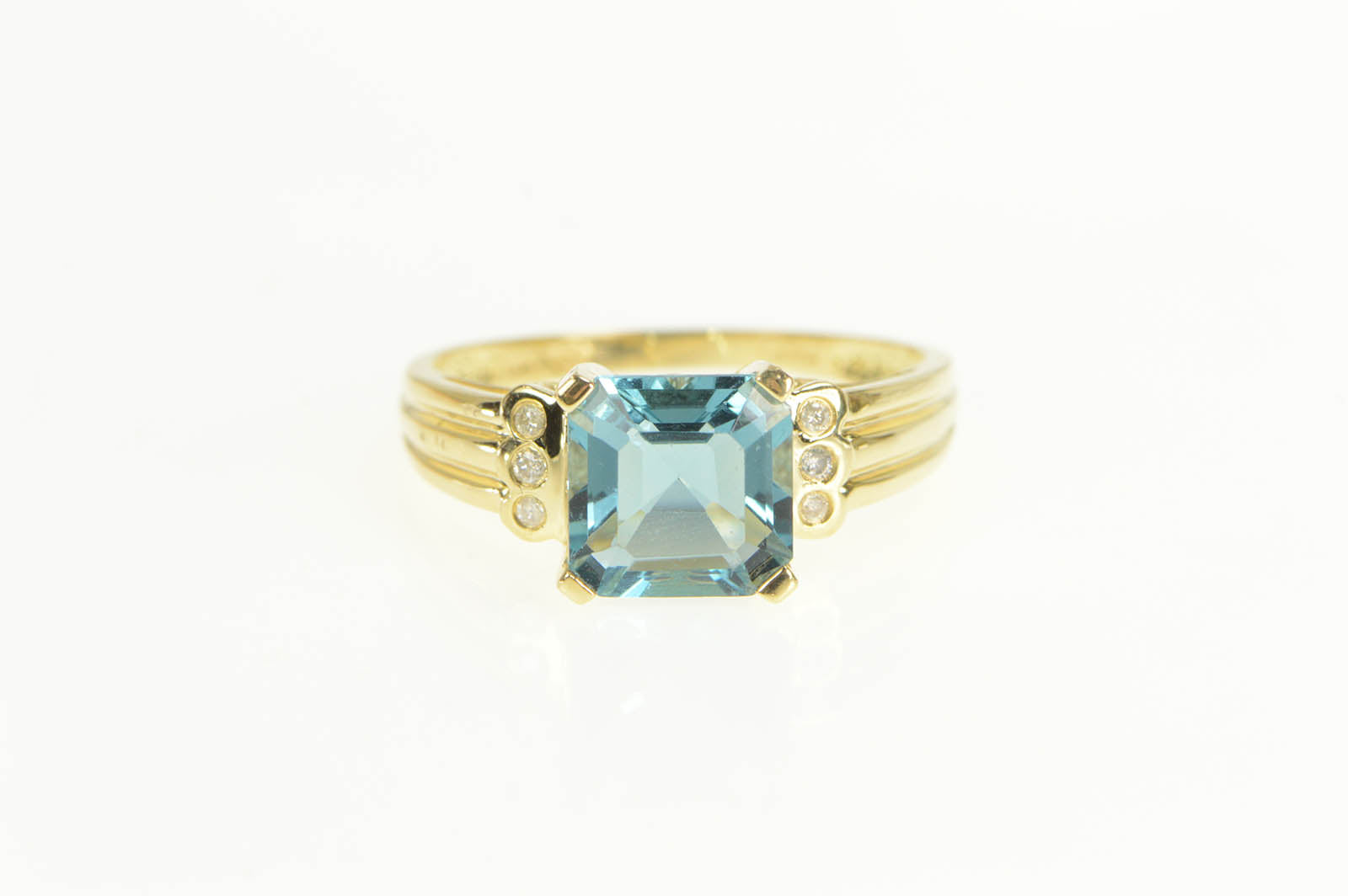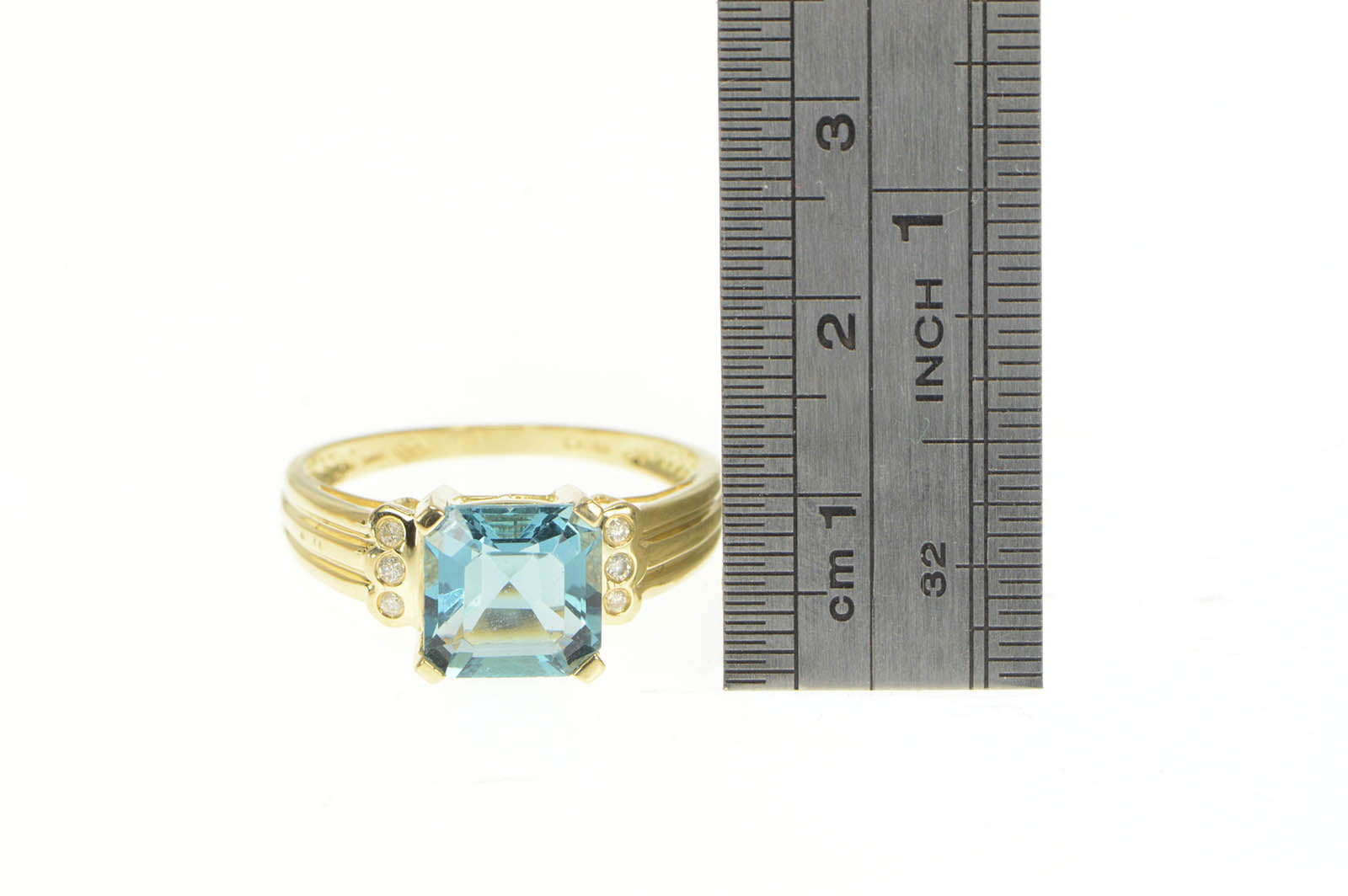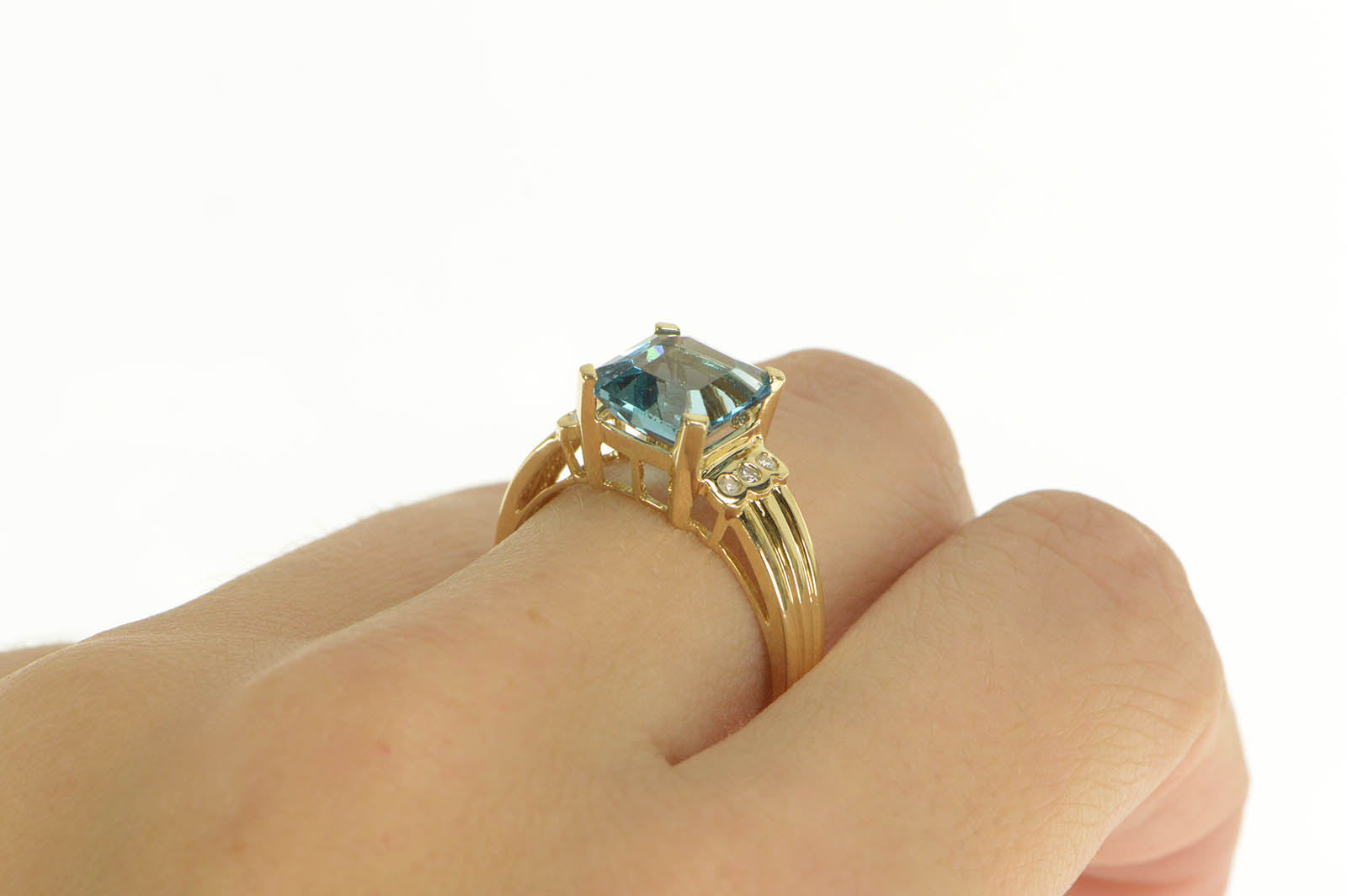 14K Princess London Blue Topaz Diamond Statement Ring Yellow Gold
