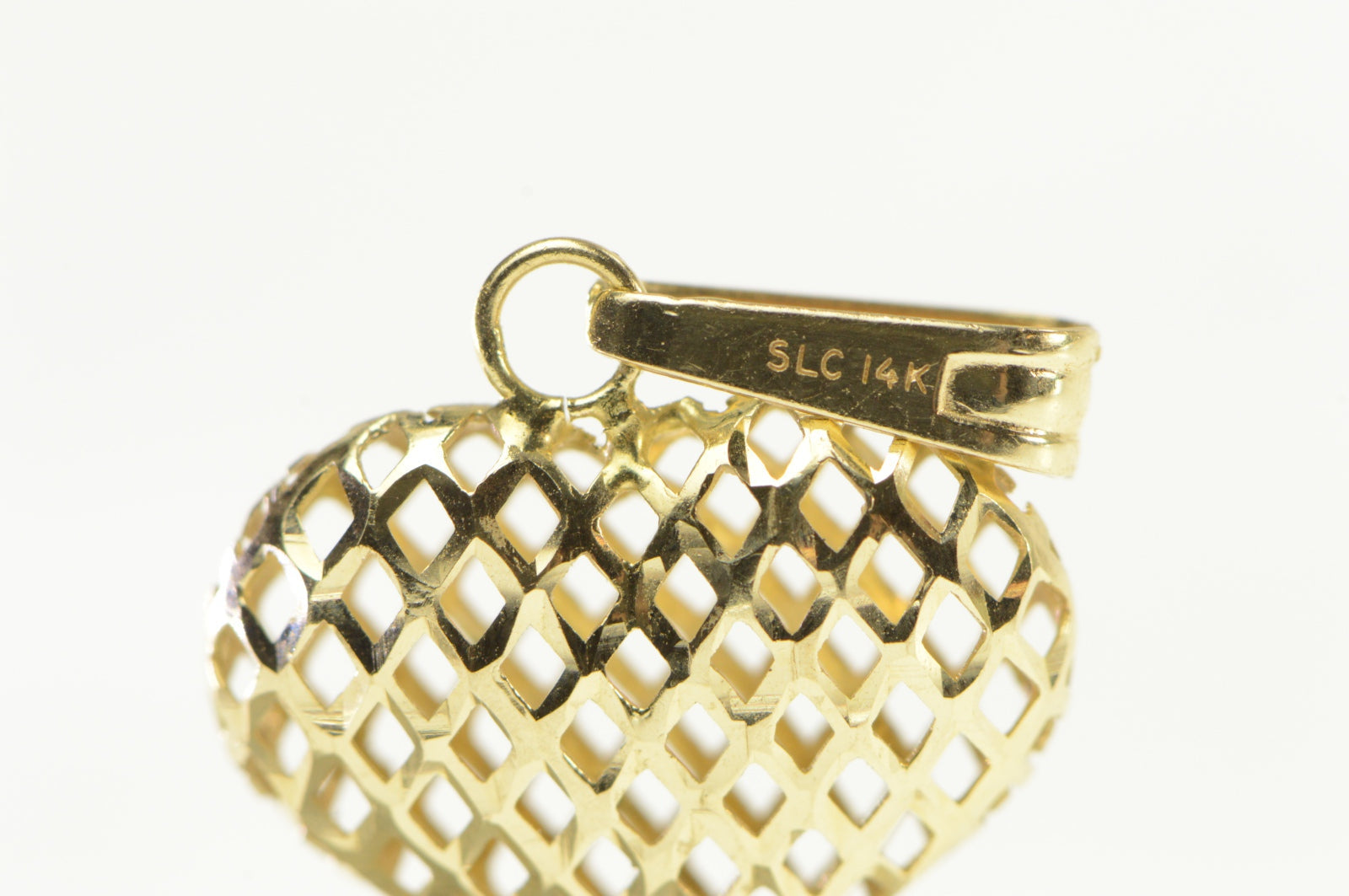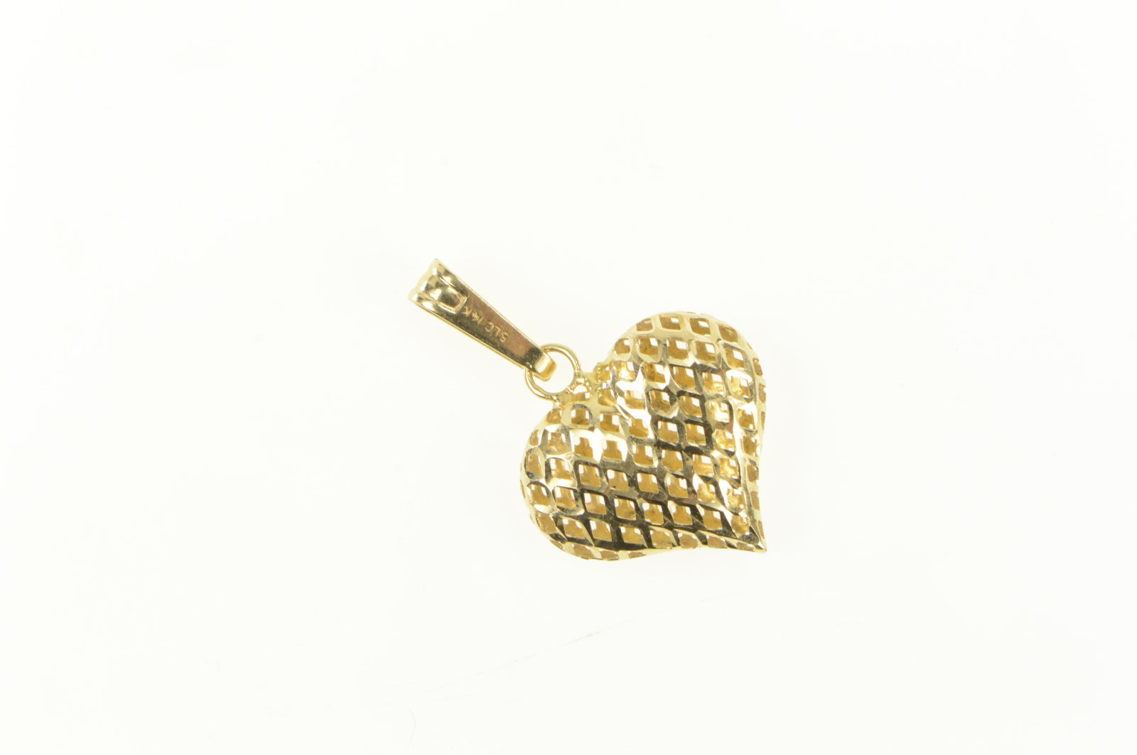 ·Item: 14K Puffy Lattice Heart Love Symbol Romantic Charm/Pendant Yellow Gold