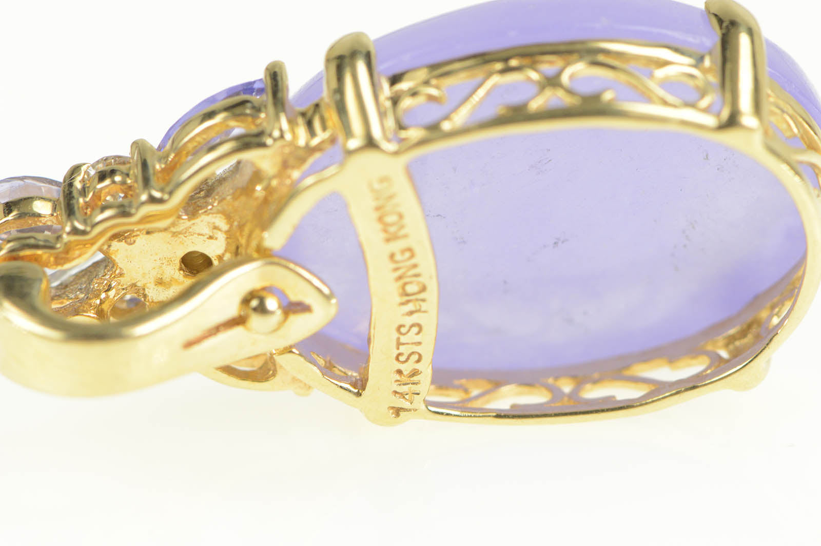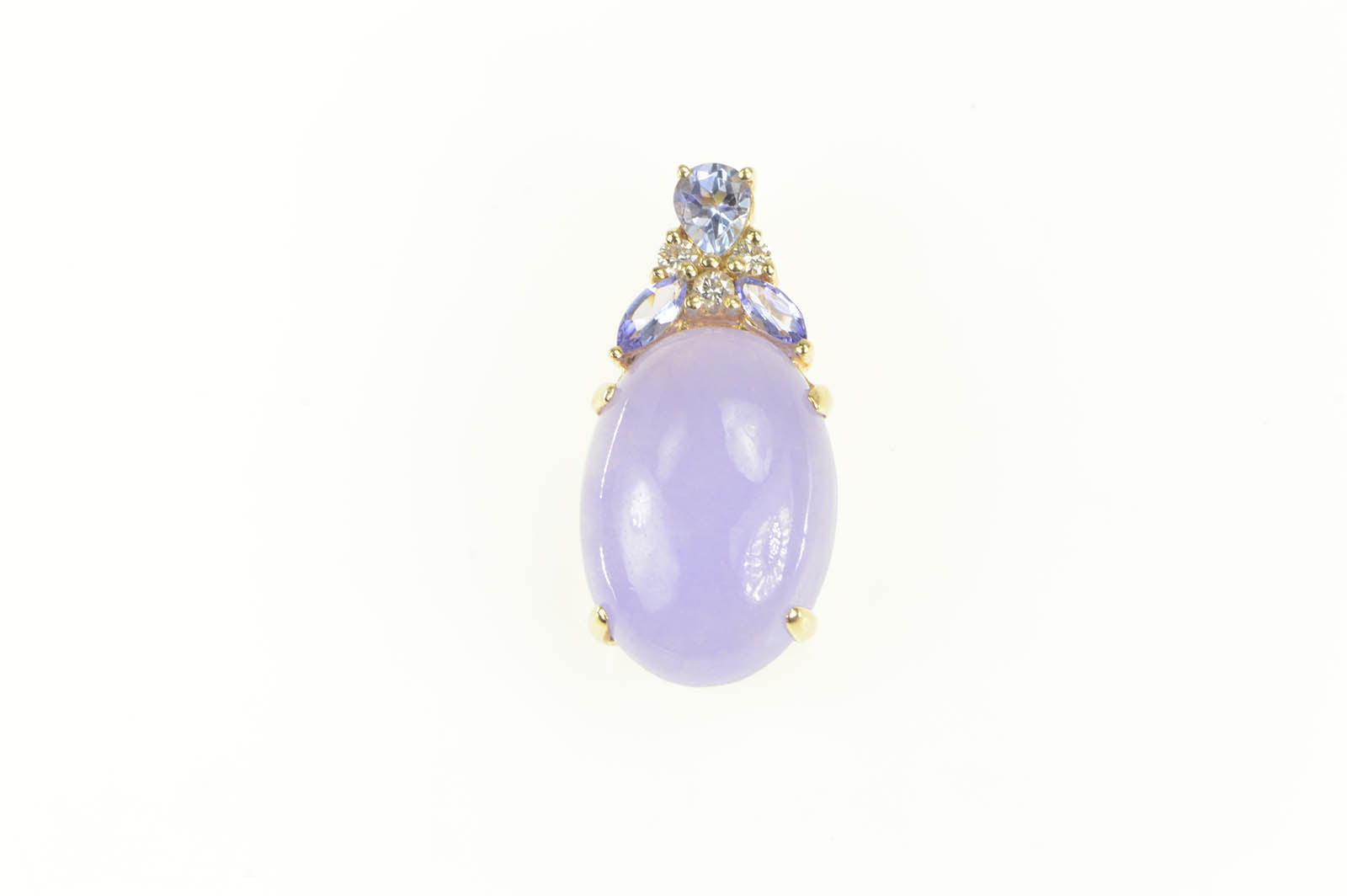 14K Purple Jade Tanzanite Diamond Accent Statement Pendant Yellow Gold