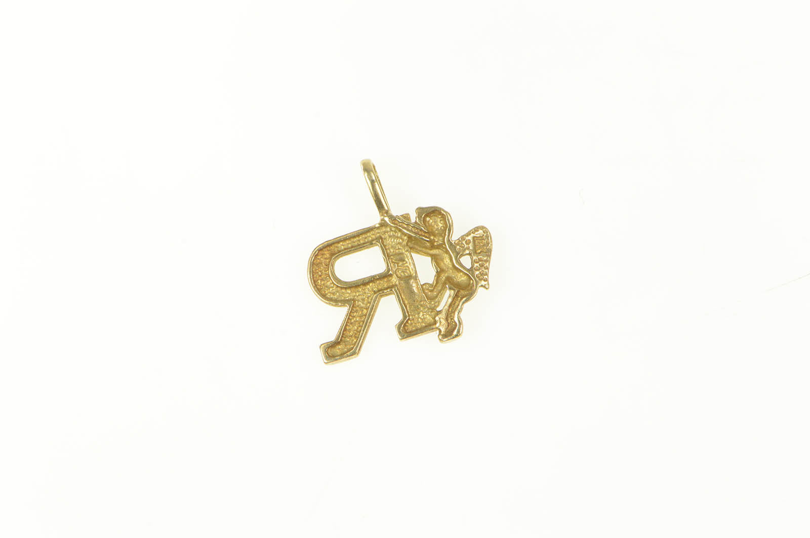 ·Item: 14K R Initial Monogram Cherub Guardian Angel Charm/Pendant Yellow Gold