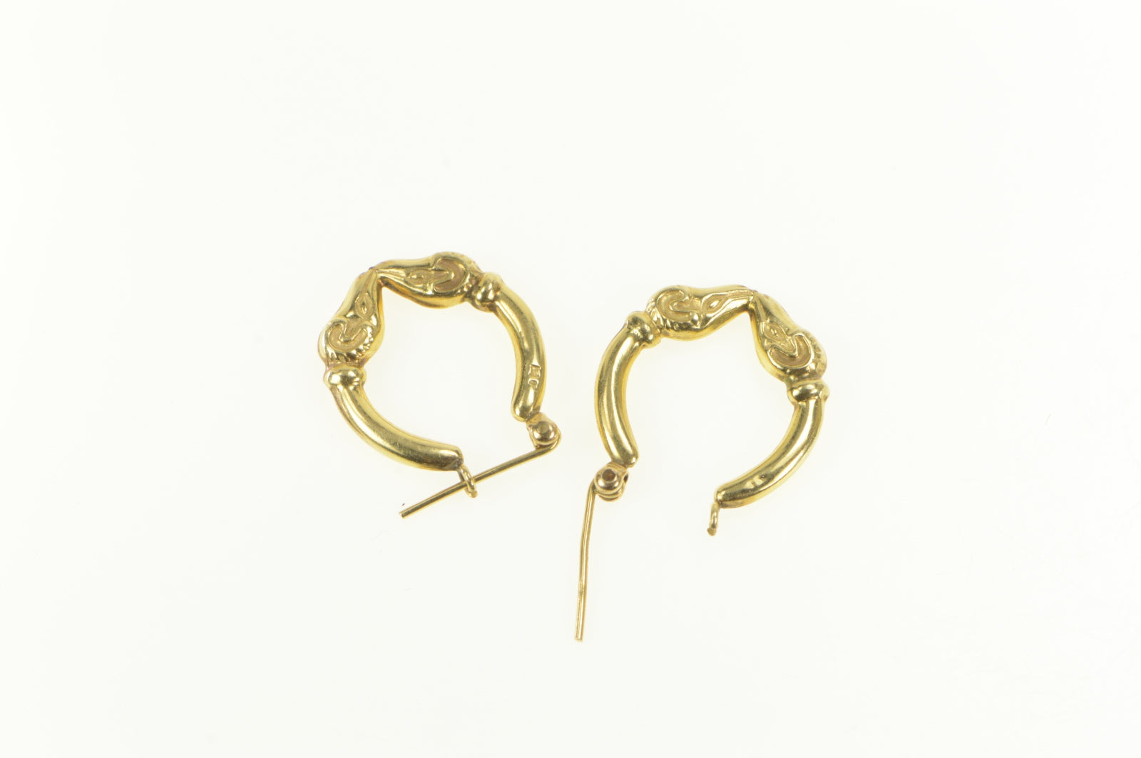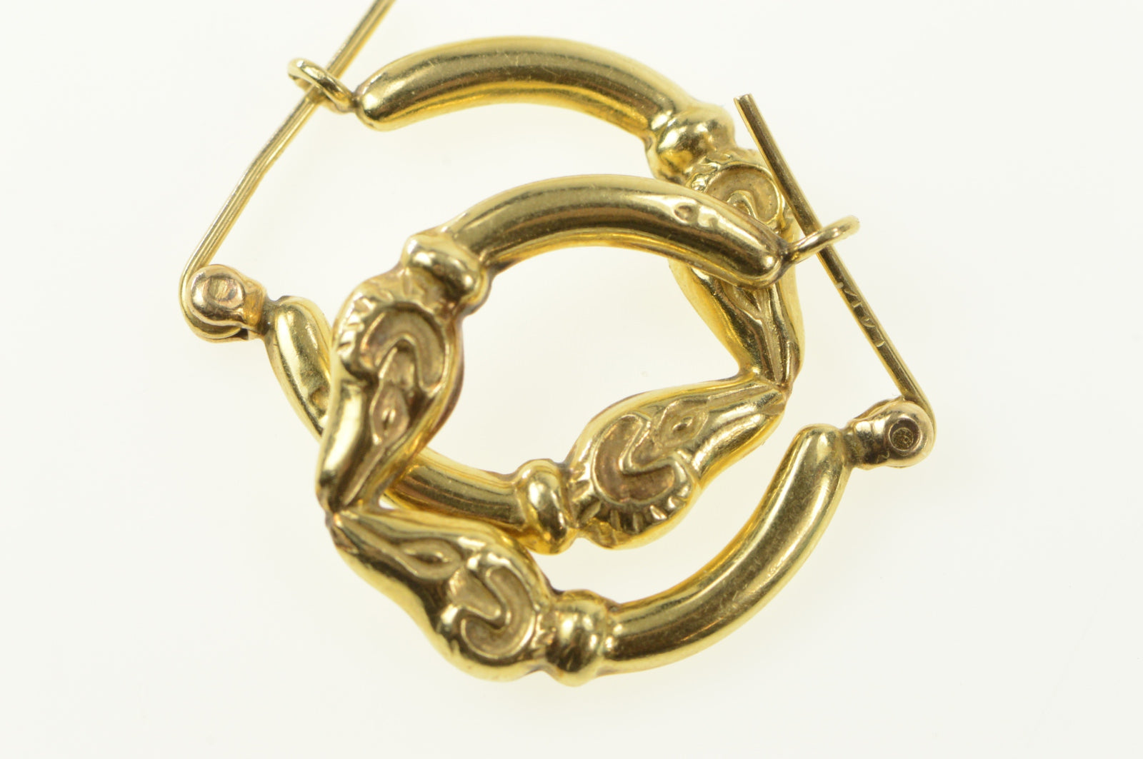 ·Item: 14K Rams Head Puffy Ornate Aries Zodiac Hoop Earrings Yellow Gold