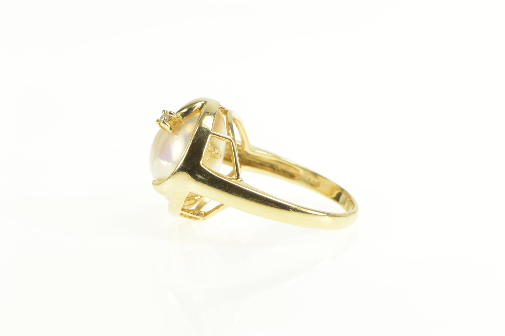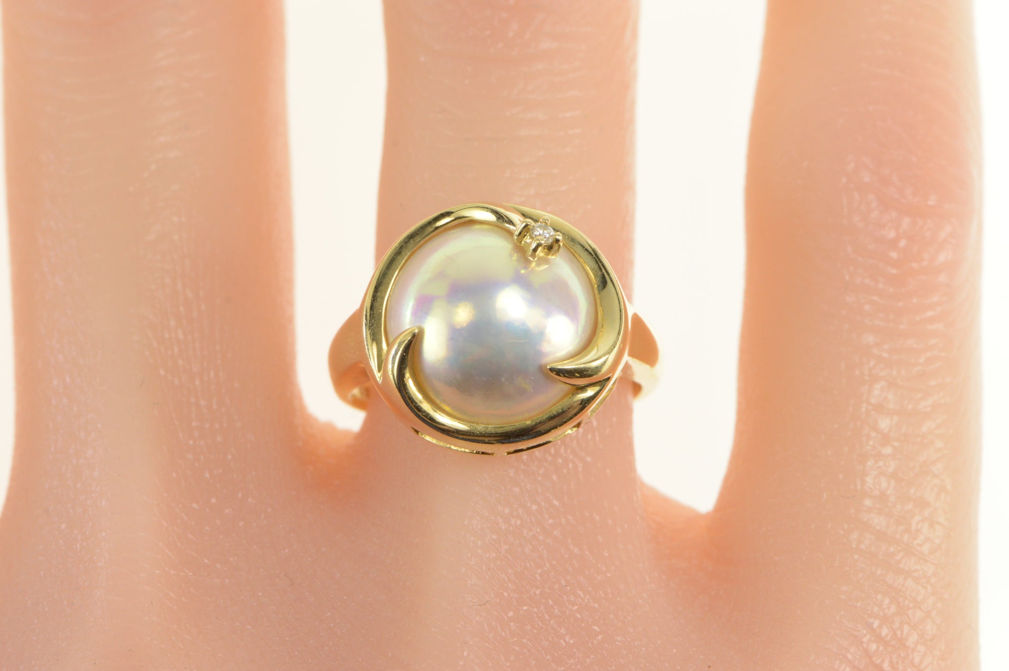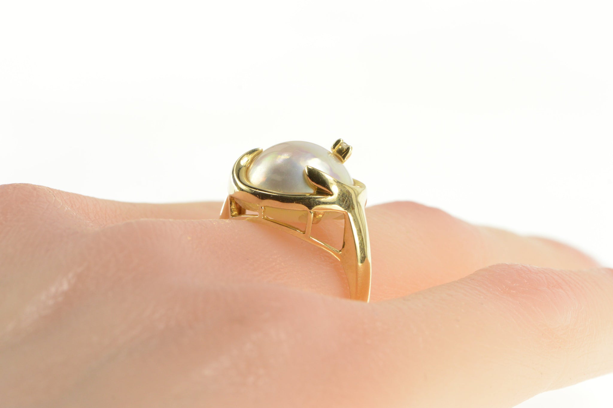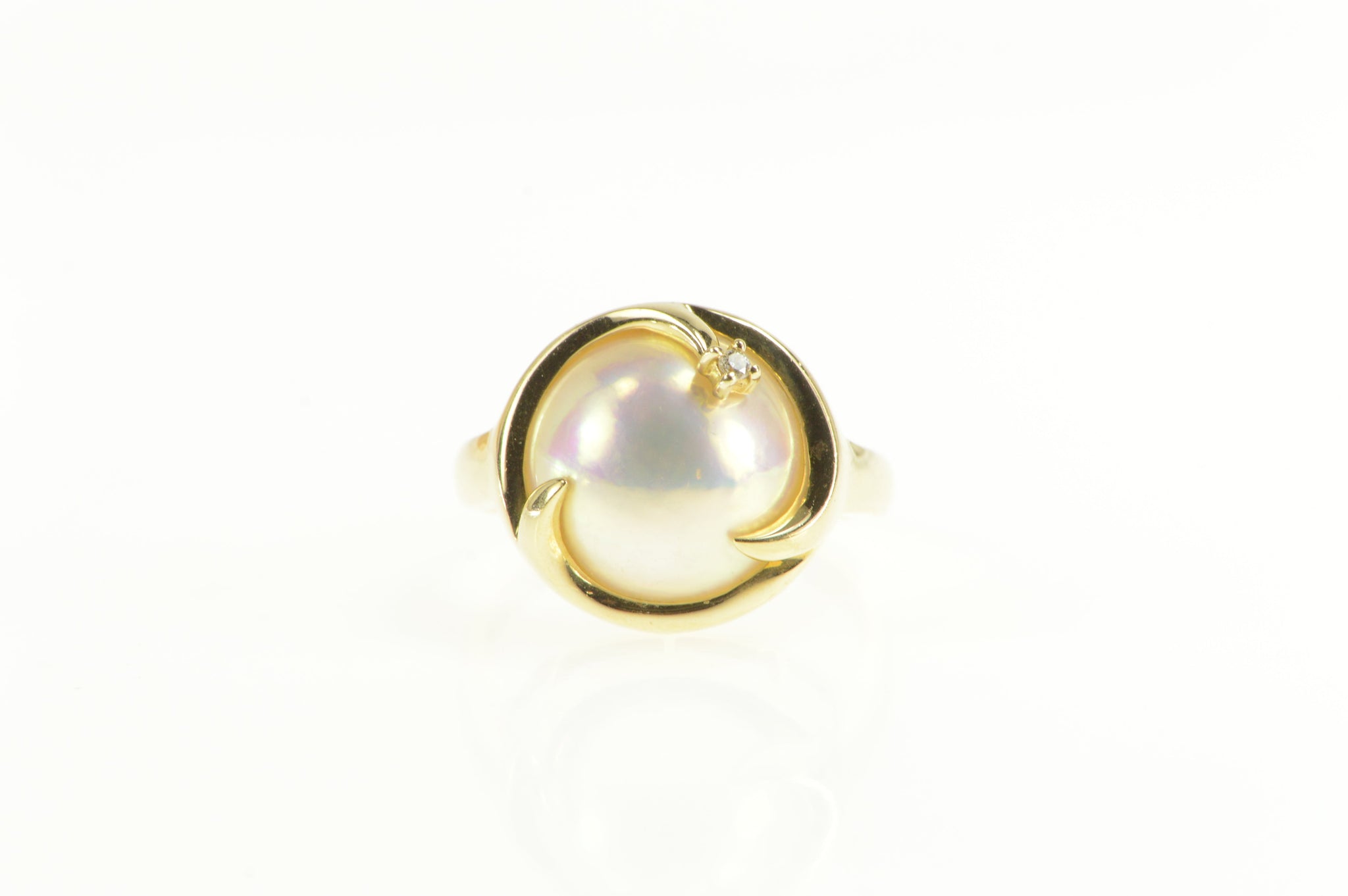 ·Item: 14K Retro Mabe Pearl Diamond Accent Swirl Ring Size 7.75 Yellow Gold