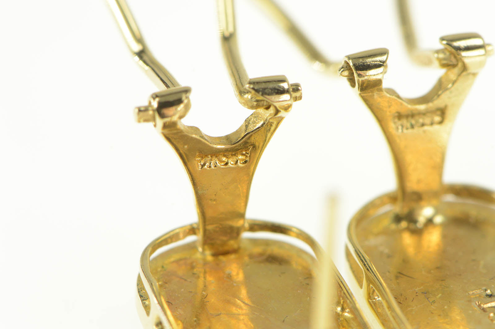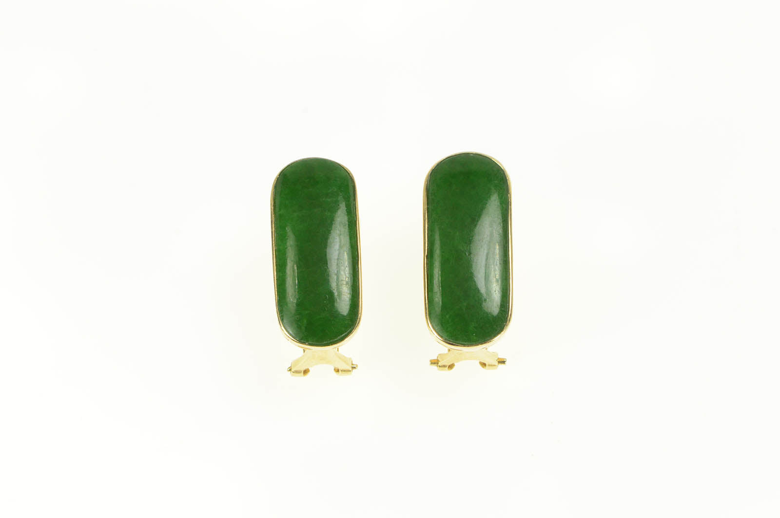 ·Item: 14K Retro Oval Jade Ornate French Clip Earrings Yellow Gold