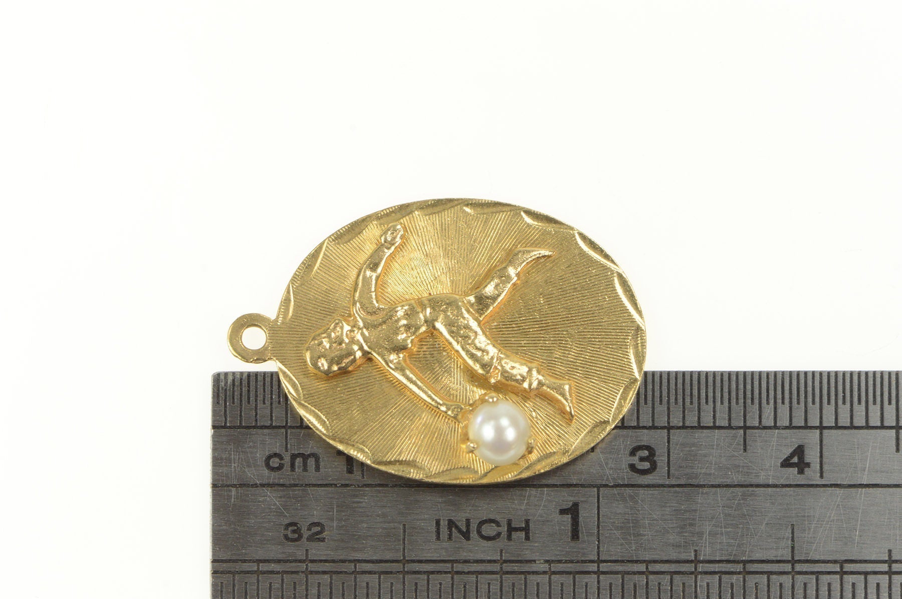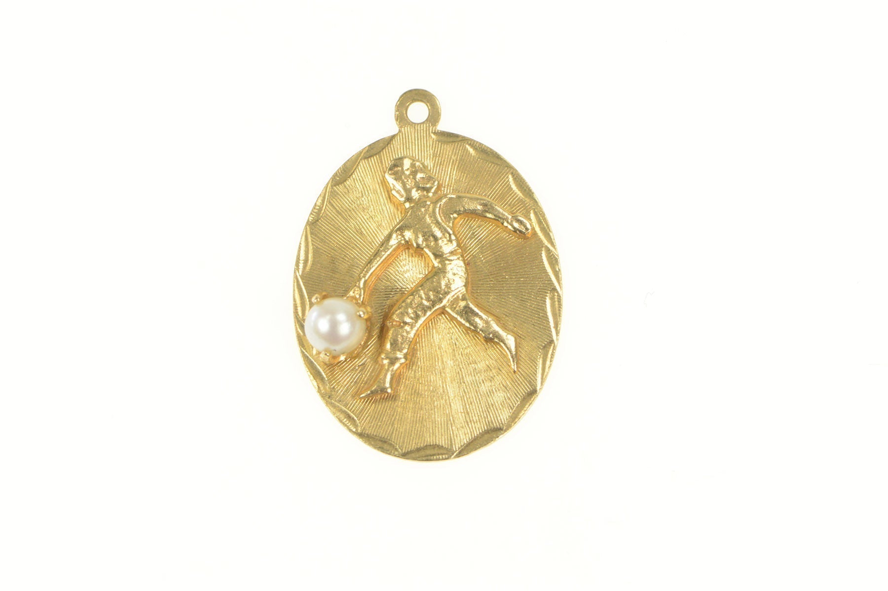 ·Item: 14K Retro Pearl Lady Bowler Bowling Sport Charm/Pendant Yellow Gold