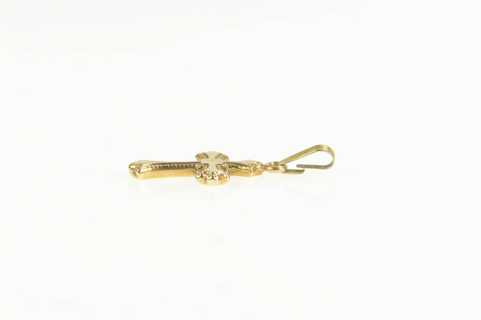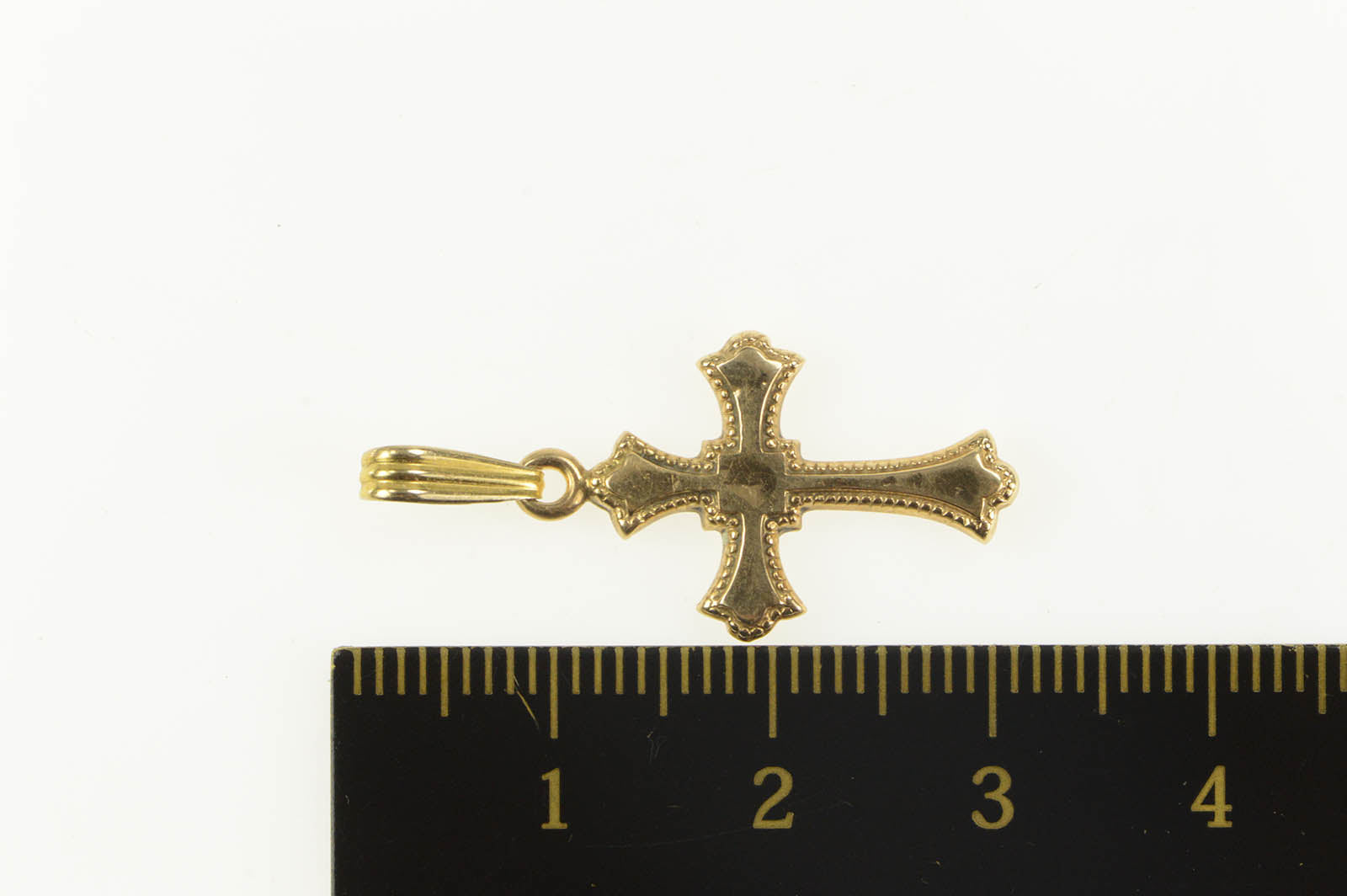 14K Retro Puffy Cross Christian Faith Symbol Pendant Yellow Gold