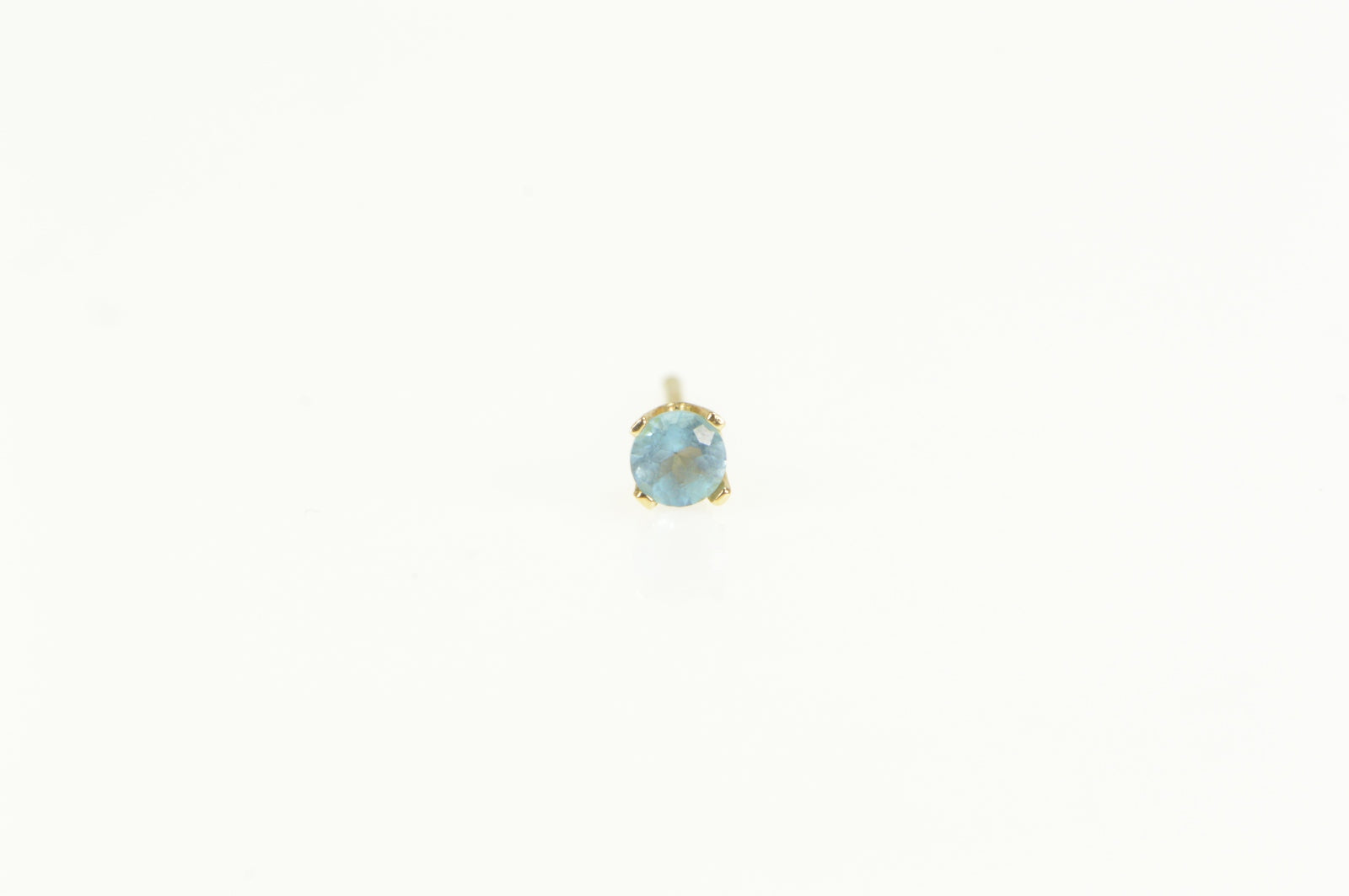 ·Item: 14K Round Blue Topaz Inset Solitaire Stud Single Earring Yellow Gold
