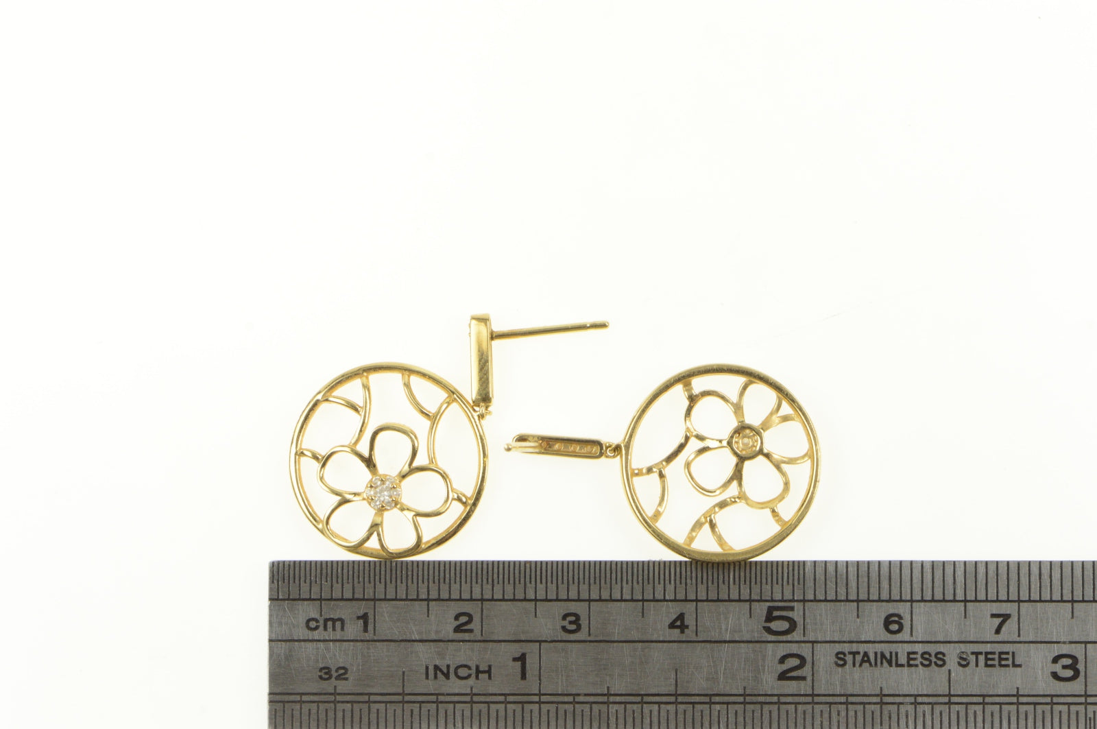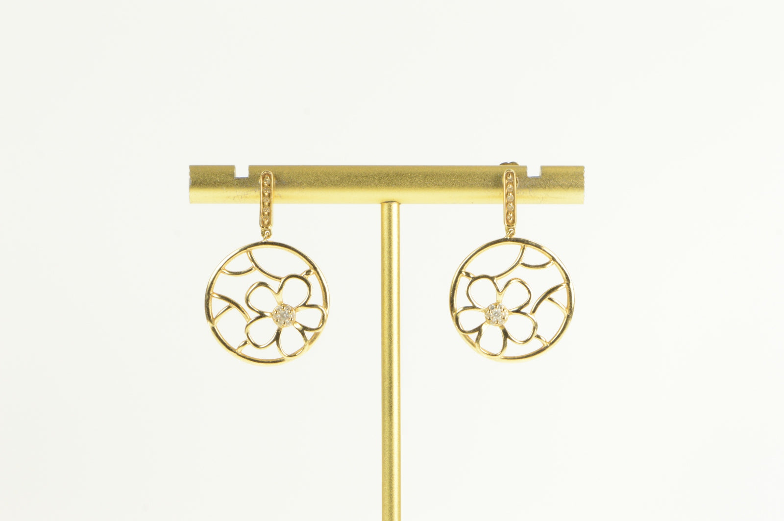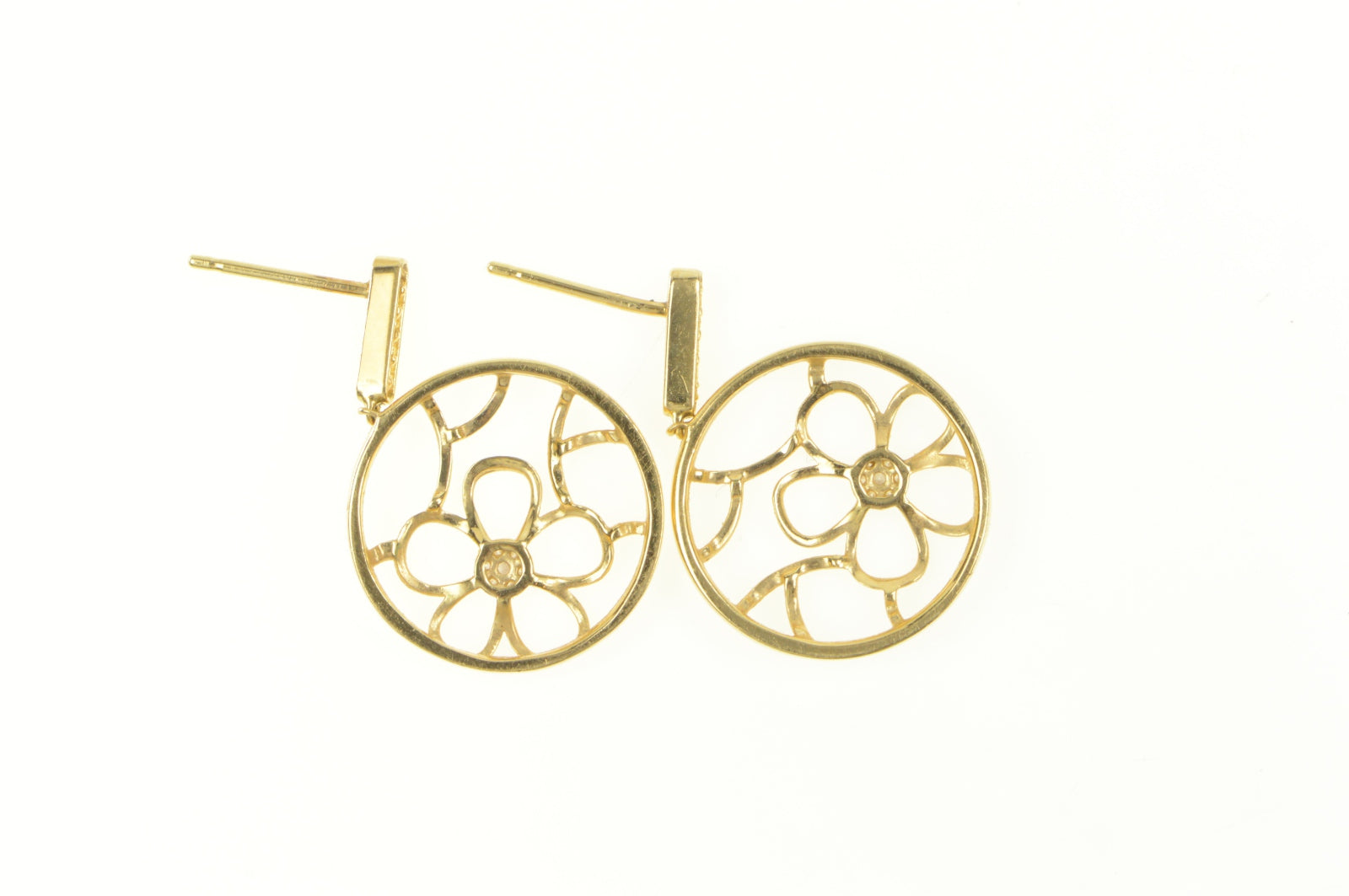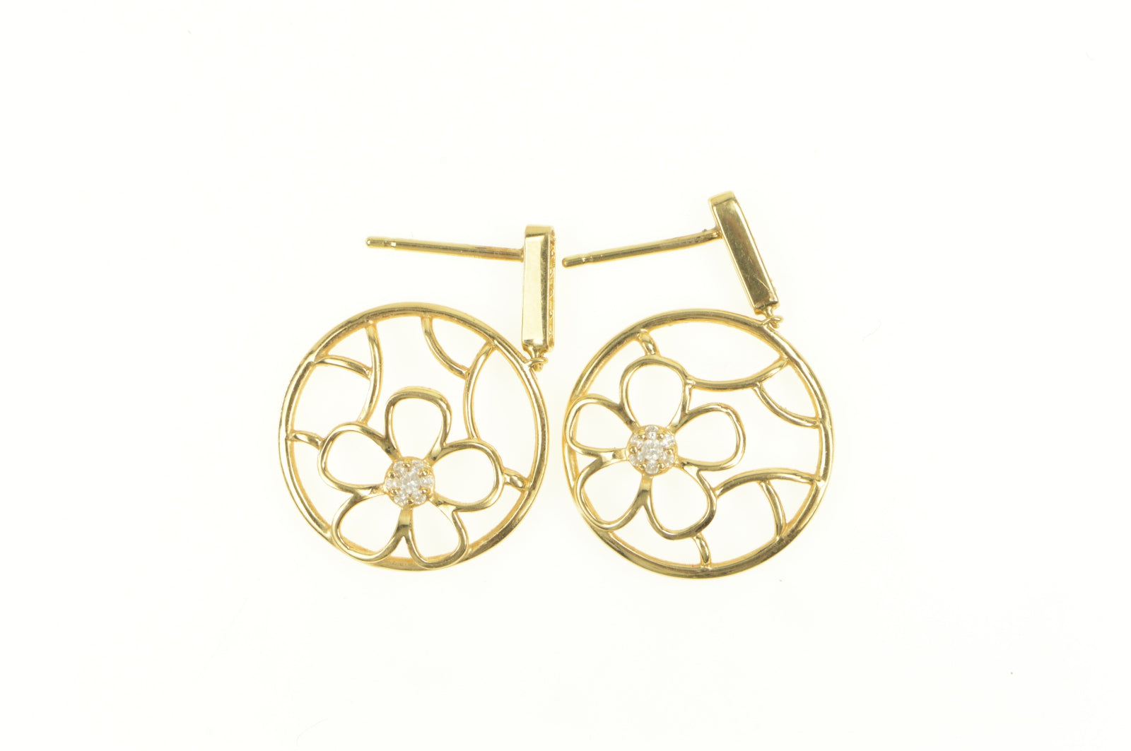 ·Item: 14K Round Flower Filigree Diamond Cluster Dangle Earrings Yellow Gold