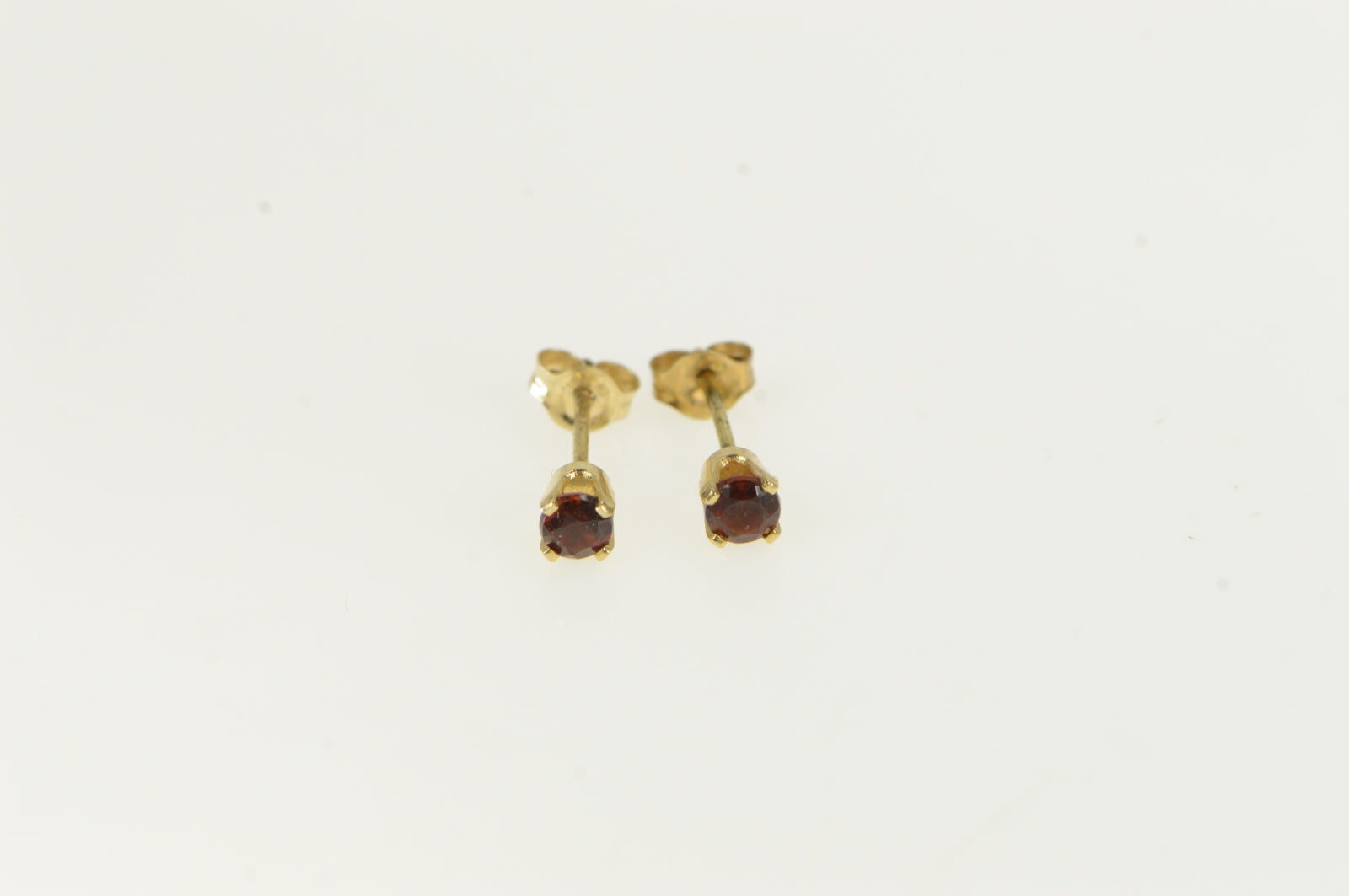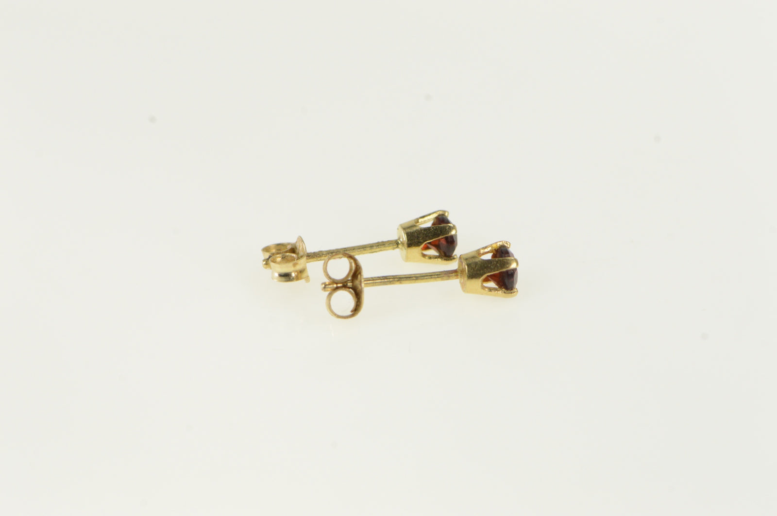 14K Round Garnet Solitaire Vintage Stud Earrings Yellow Gold