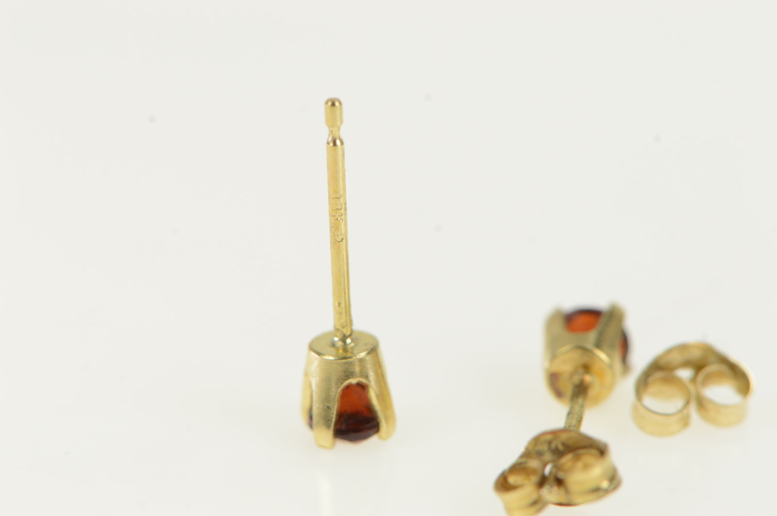 ·Item: 14K Round Garnet Solitaire Vintage Stud Earrings Yellow Gold
