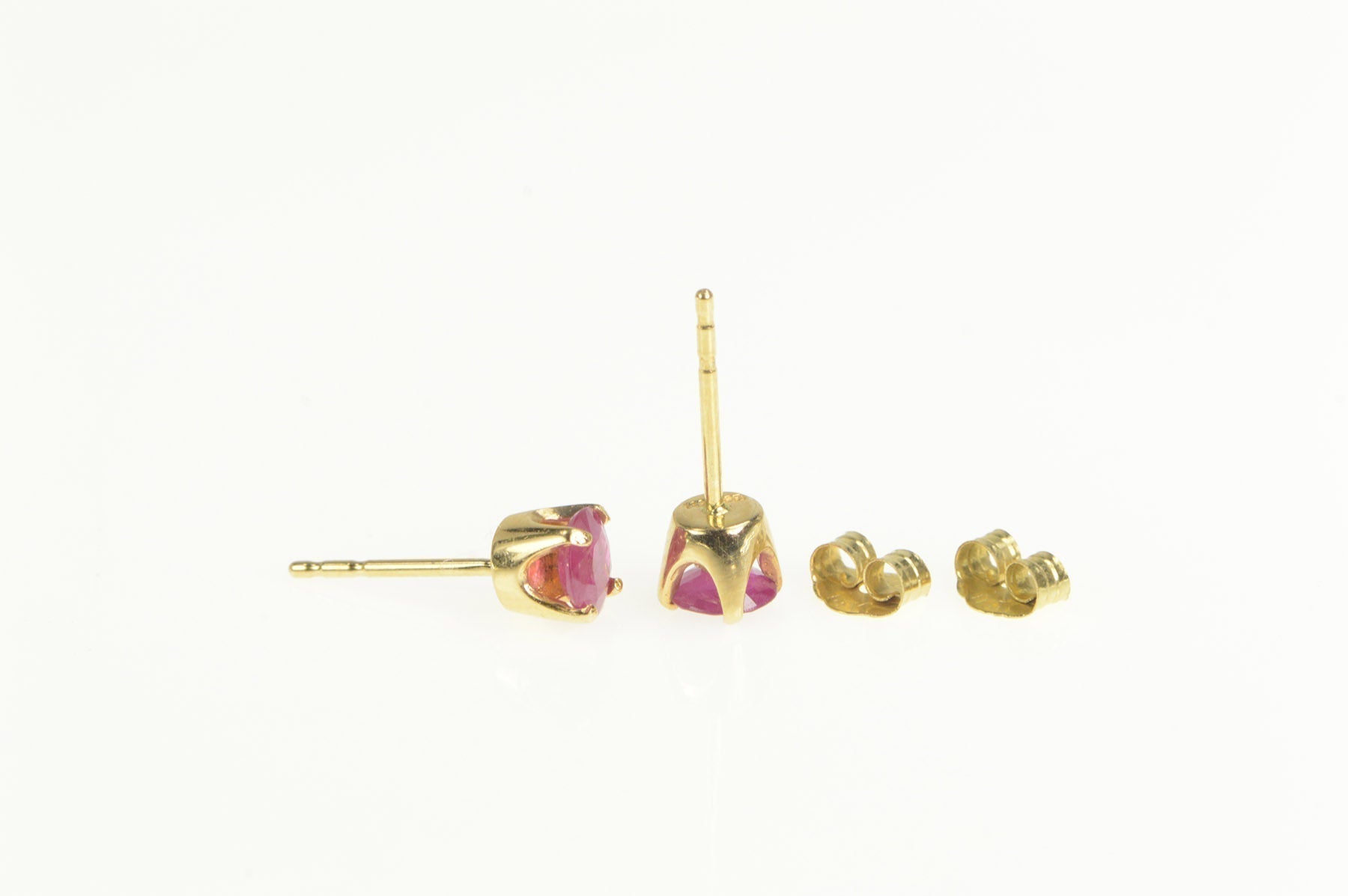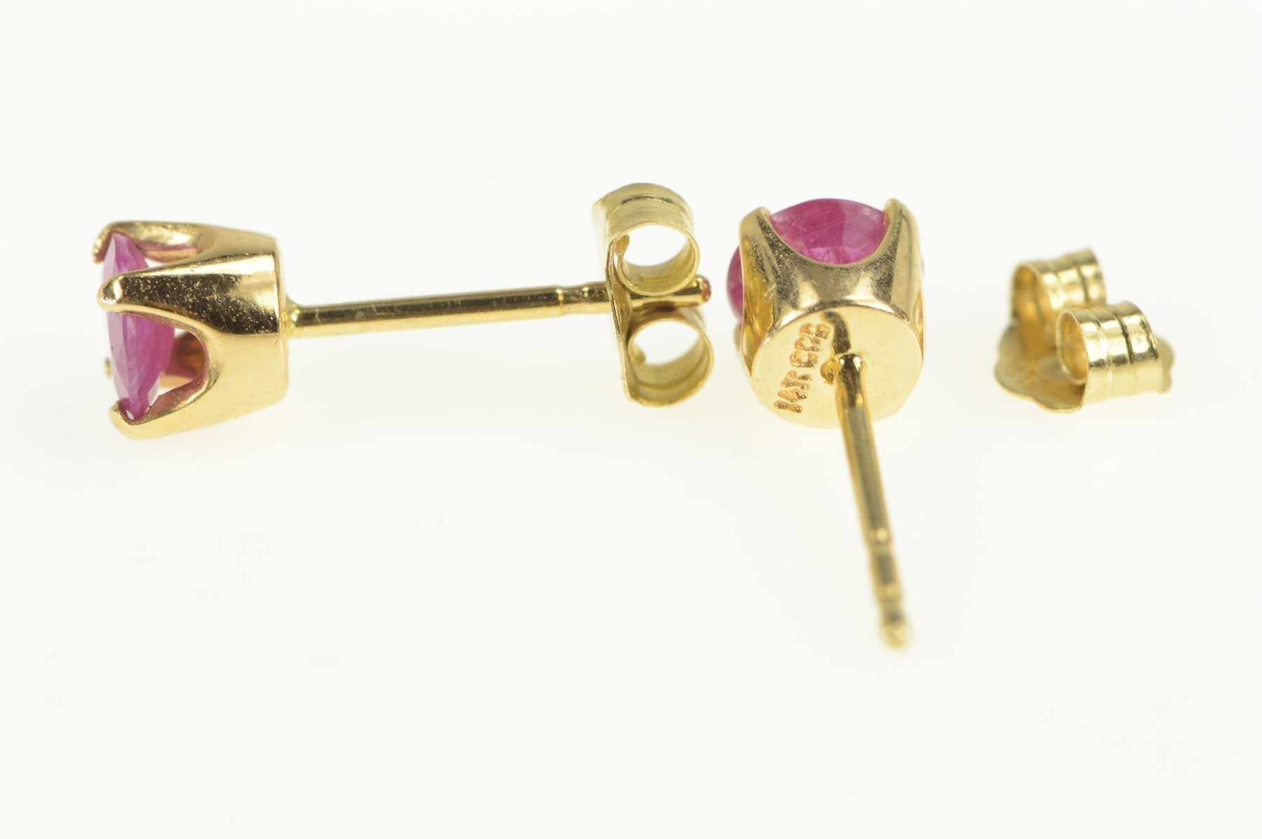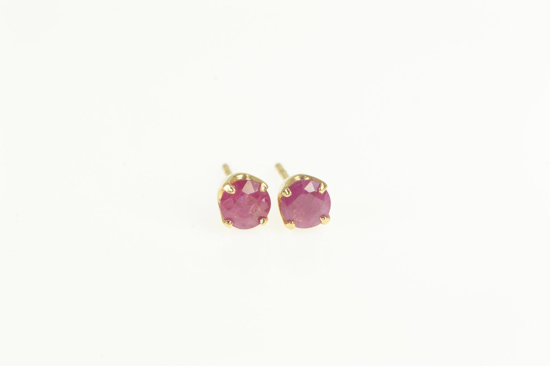 ·Item: 14K Round Natural Ruby Solitaire Classic Stud Earrings Yellow Gold