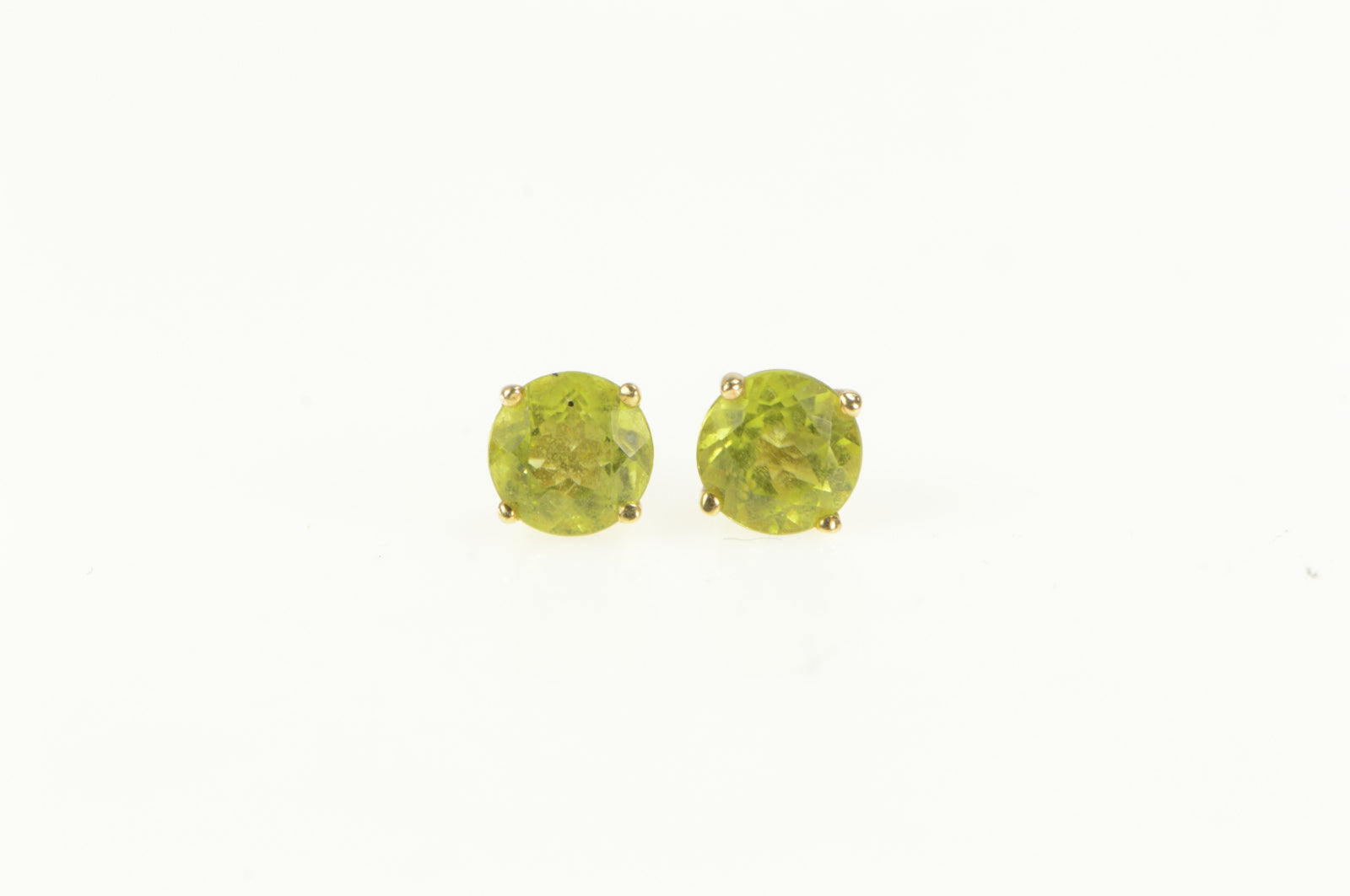 ·Item: 14K Round Peridot Solitaire Classic Simple Stud Earrings Yellow Gold