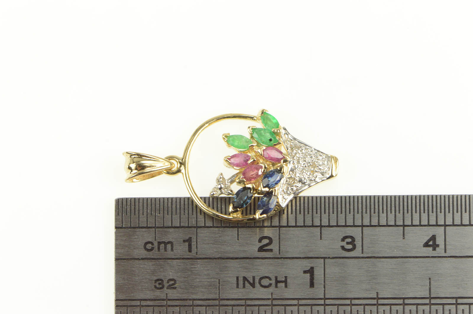 ·Item: 14K Ruby Sapphire Diamond Bouquet Basket Charm/Pendant Yellow Gold