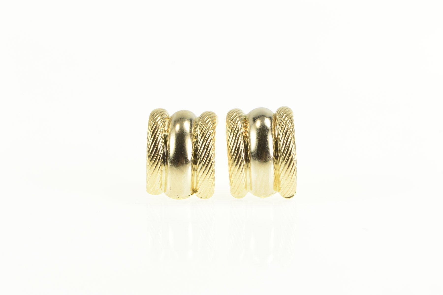 14K Scalloped Curved Semi Hoop Simple Earrings Yellow Gold