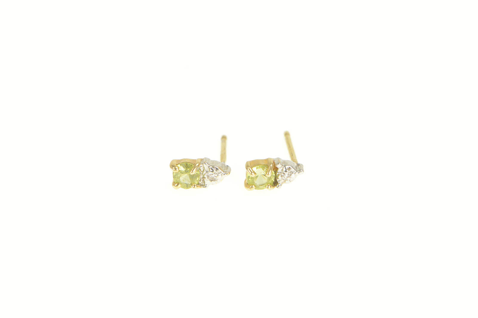 ·Item: 14K Simple Peridot Diamond Accent Stud Earrings Yellow Gold