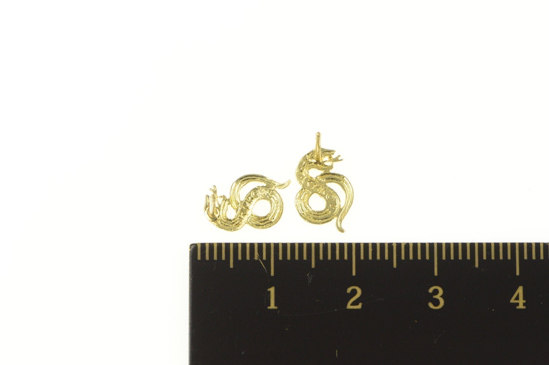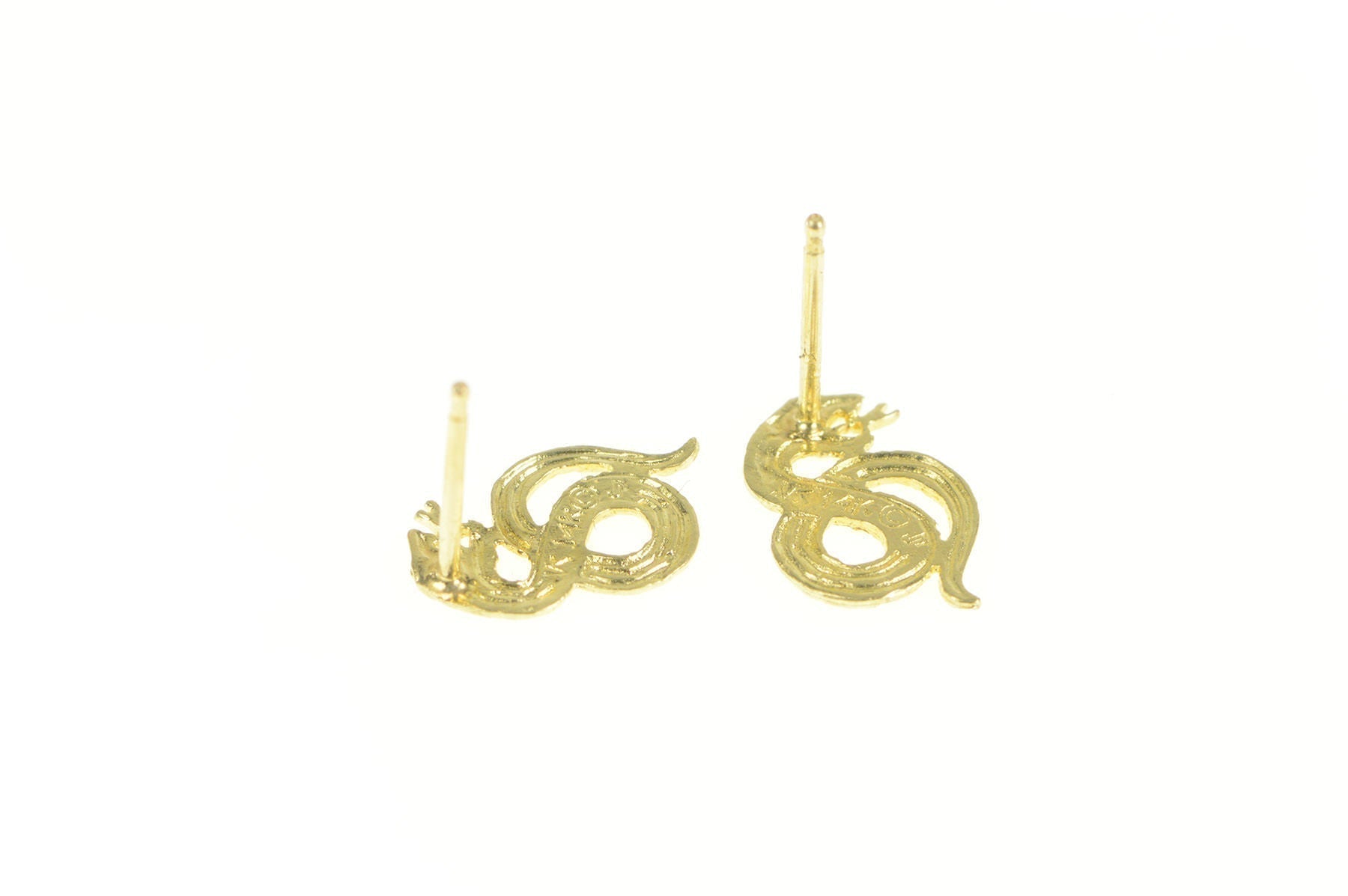 14K Snake Serpent Dragon Etched Stud Earrings Yellow Gold