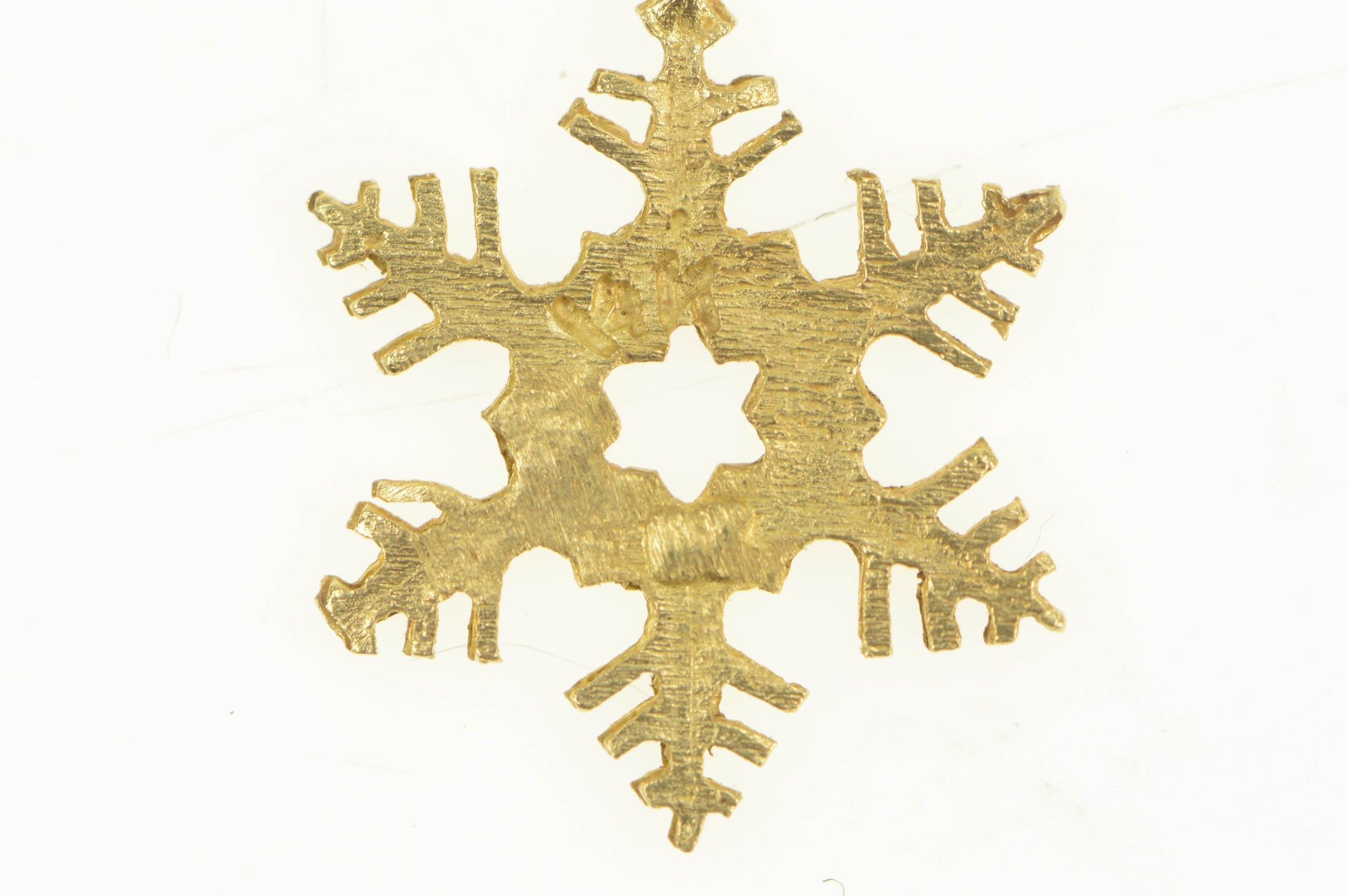 14K Snow Flake Diamond Cut Winter Season Symbol Charm/Pendant Yellow Gold