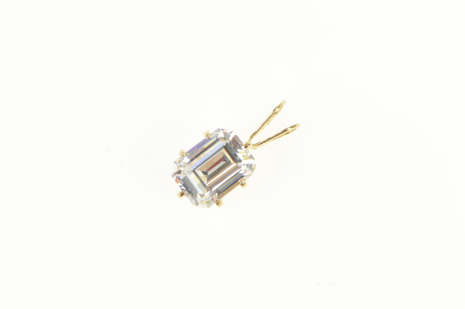 14K Solitaire Emerald Cut Classic Solitaire CZ Pendant Yellow Gold
