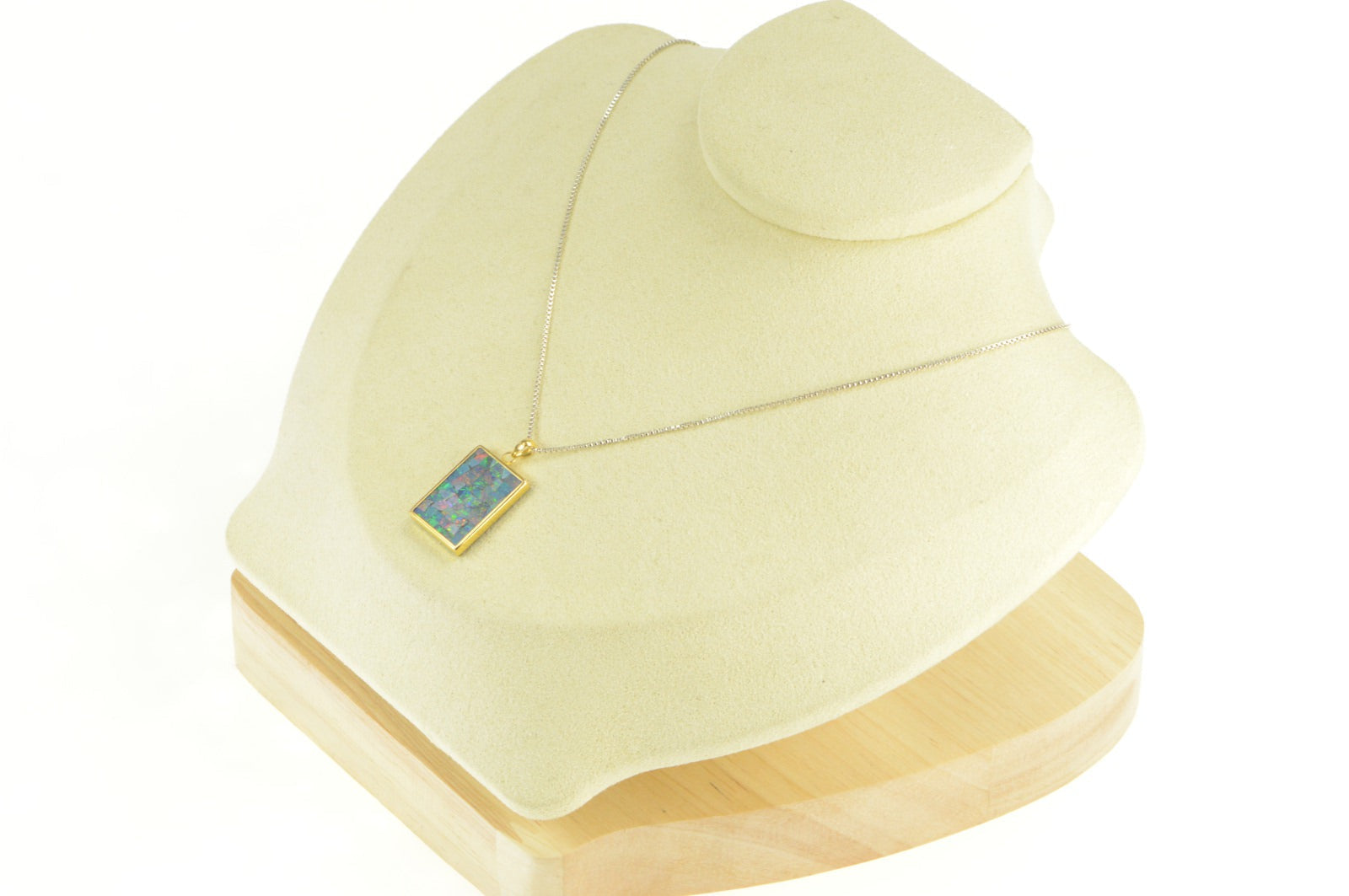·Item: 14K Squared Black Opal Mosaic Inlay Statement Pendant Yellow Gold
