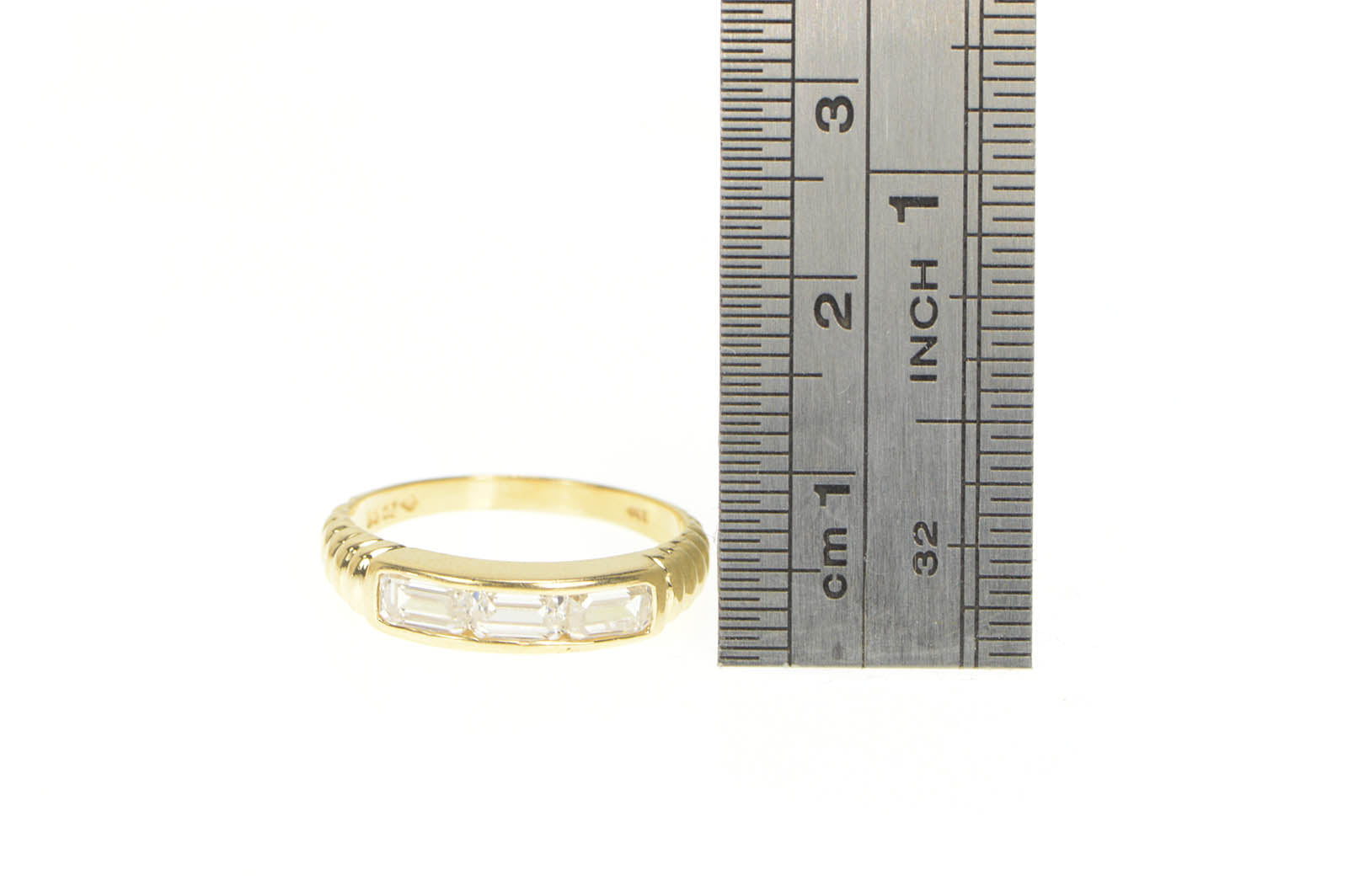 ·Item: 14K Three Stone Baguette CZ Wedding Band Ring Size 7 Yellow Gold