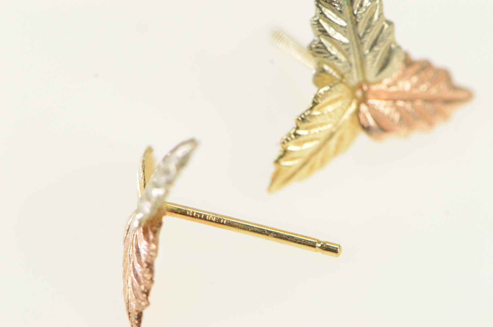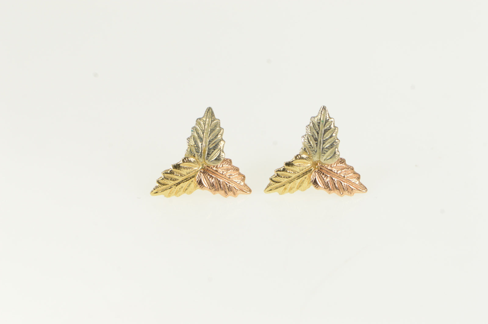 14K Tri Tone Black Hills Leaf Vintage Stud Earrings Yellow Gold