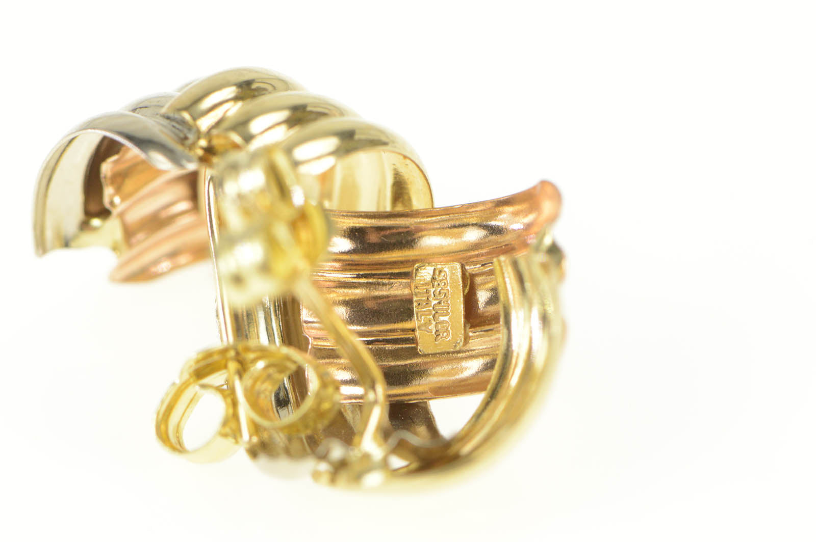 ·Item: 14K Tri Tone Grooved Layered Statement Stud Earrings Yellow Gold