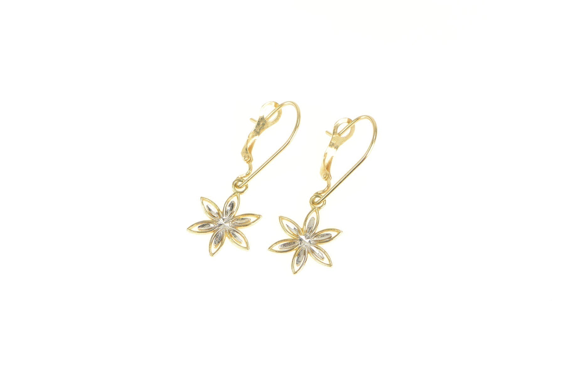 ·Item: 14K Two Tone Daisy Flower Dangle Lever Back Earrings Yellow Gold