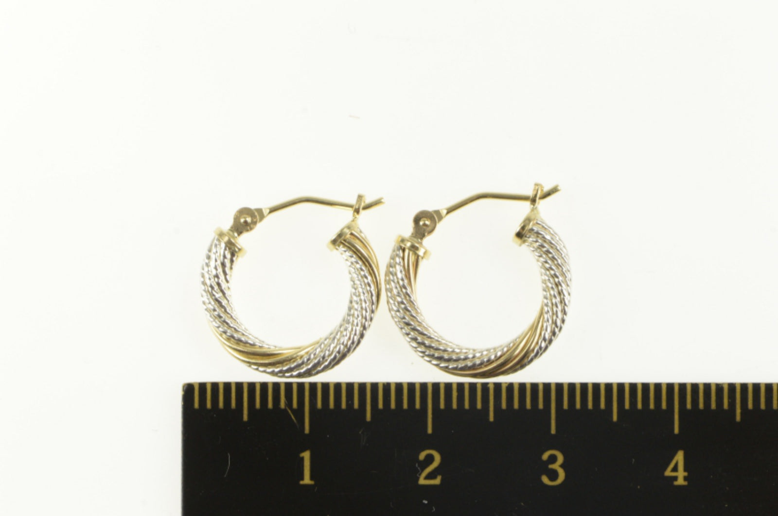 ·Item: 14K Two Tone Rope Pattern Twist Fancy Hoop Earrings White Gold