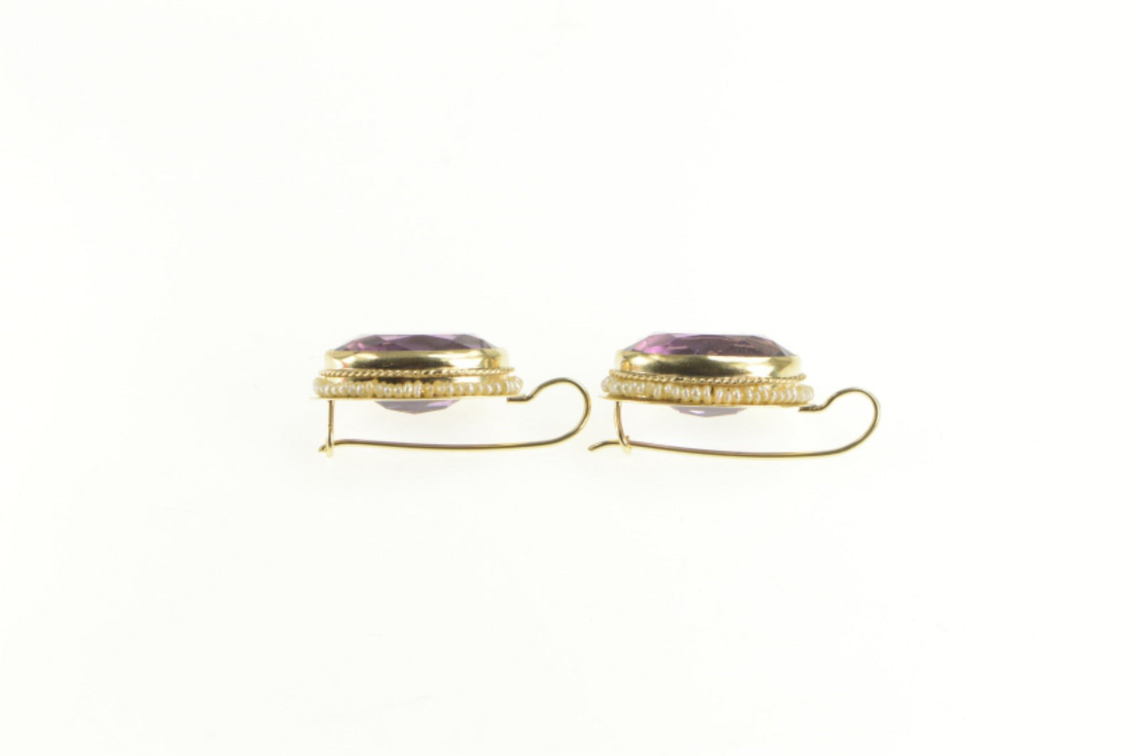 ·Item: 14K Victorian Amethyst Seed Pearl Halo Dangle Earrings Yellow Gold