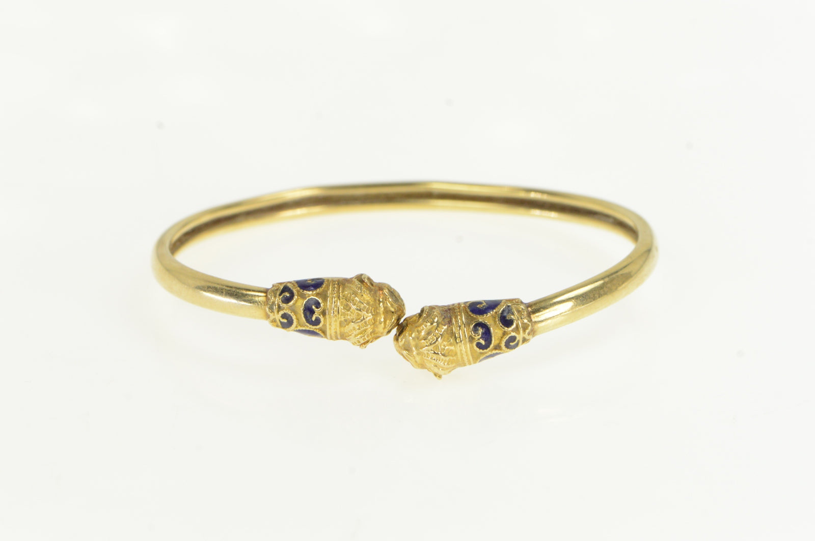 ·Item: 14K Victorian Blue Enamel Lion Head Bypass Bracelet 6.25" Yellow Gold