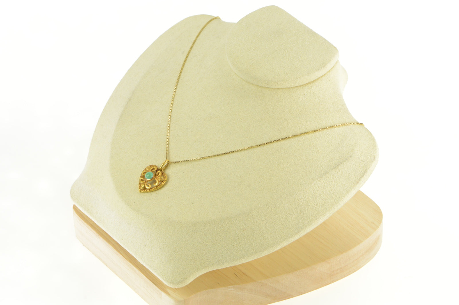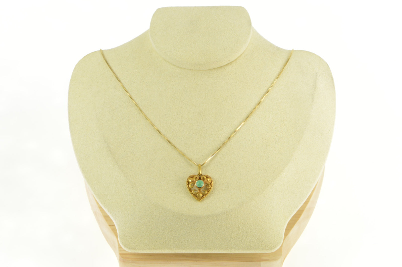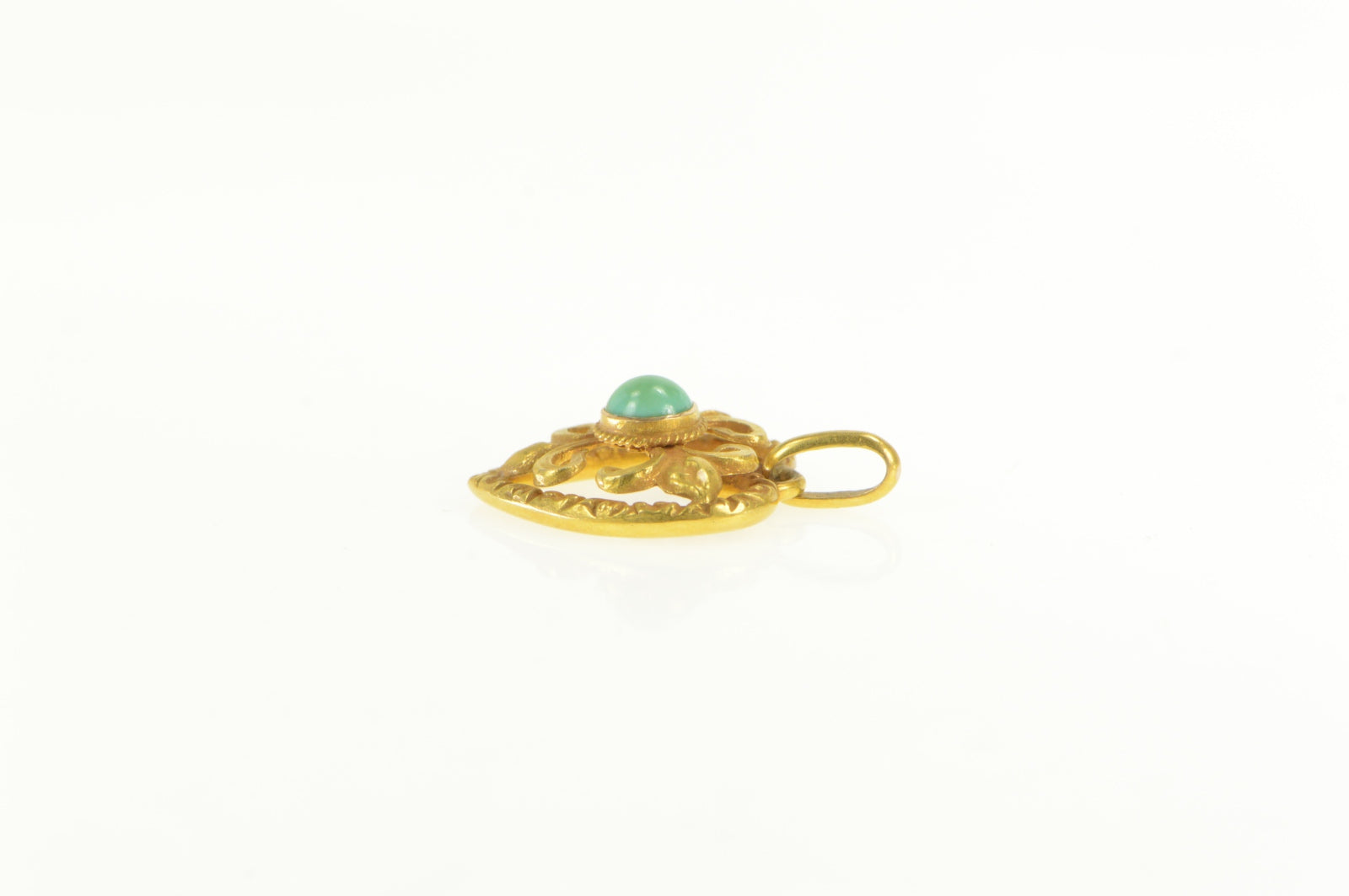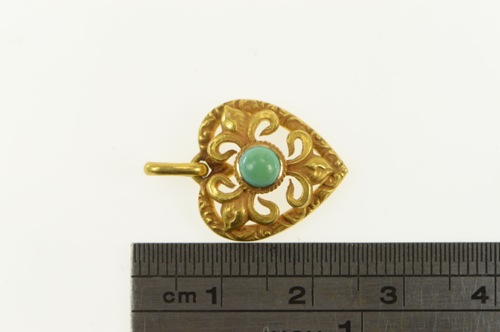 ·Item: 14K Victorian Heart Turquoise Ornate Filigree Pendant Yellow Gold